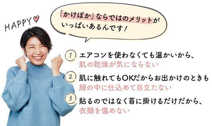 肌にも衣類にもやさしい♪首にかけるだけでポカポカのカイロで、重ね着しなくてもあったか♪