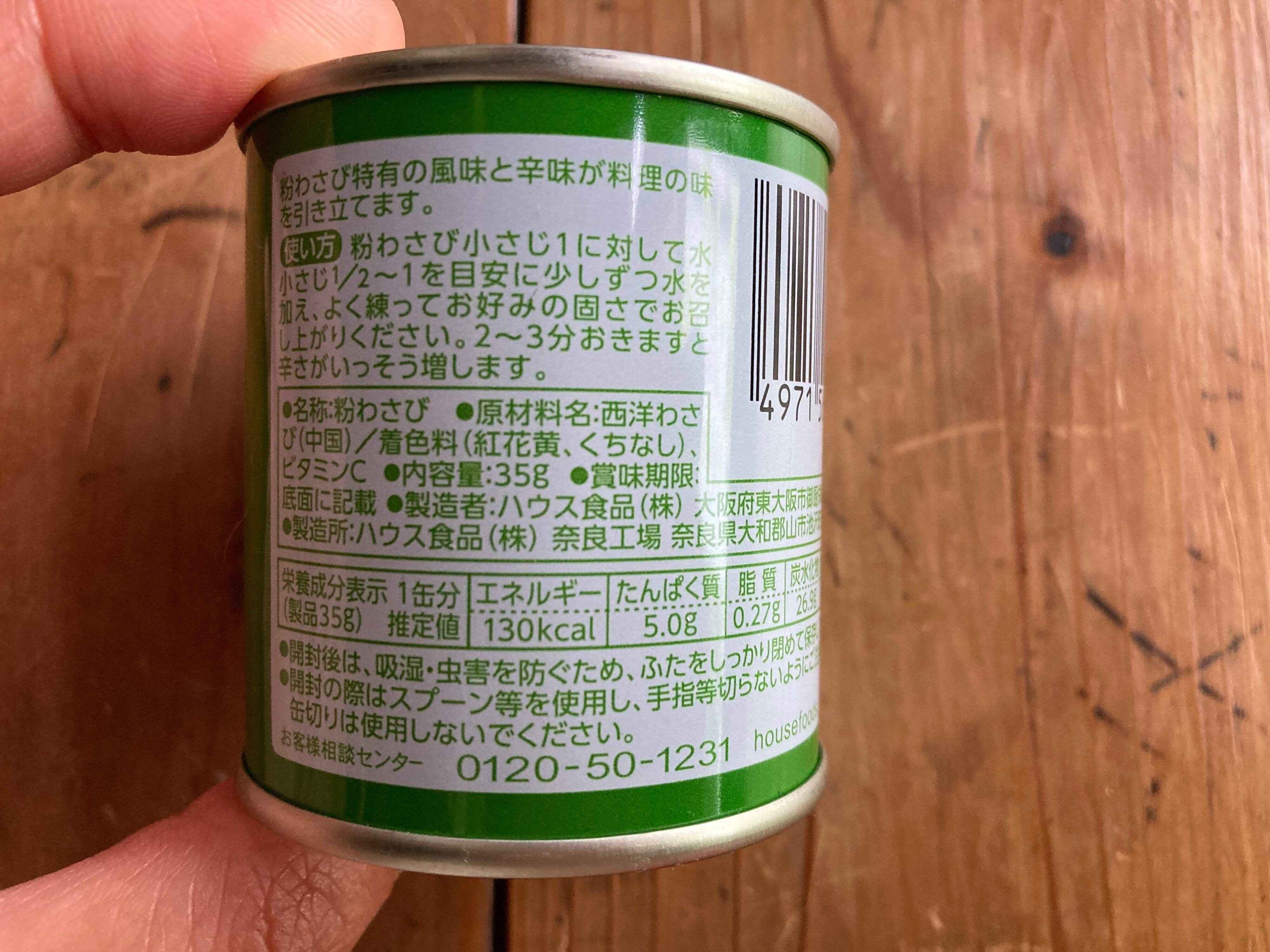 原材料名は「西洋わさび(中国)/着色料(紅花黄、くちなし)、ビタミンC」のみです。チューブタイプのものは添加物が多くて買うのをためらっていた私にはうってつけの粉ワサビ!