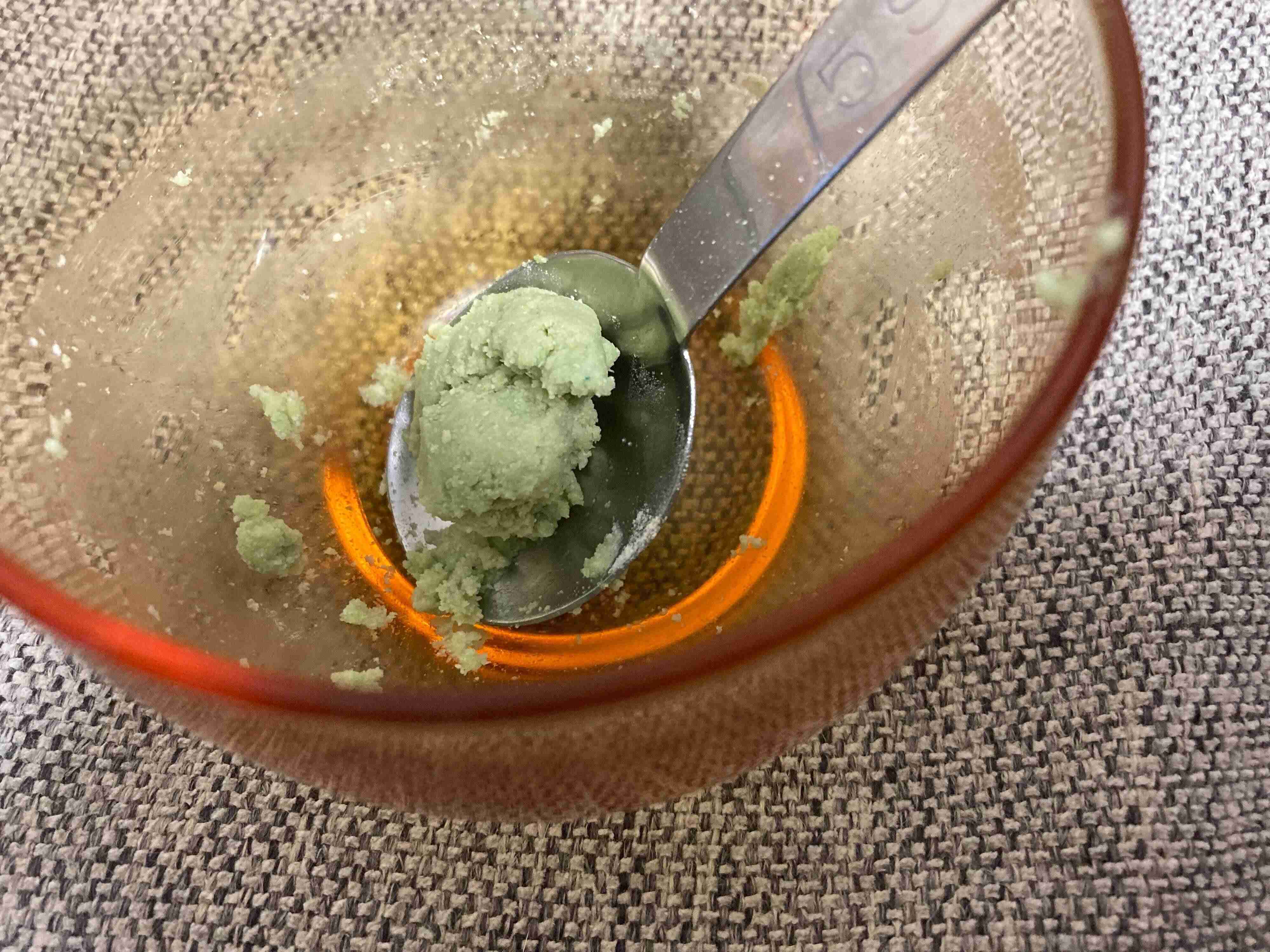 粉が白っぽいので、一見本当にワサビになるのか?と心配しましたが、練ると薄い緑色に。このほんのりとした色合いも上品で良い感じです。