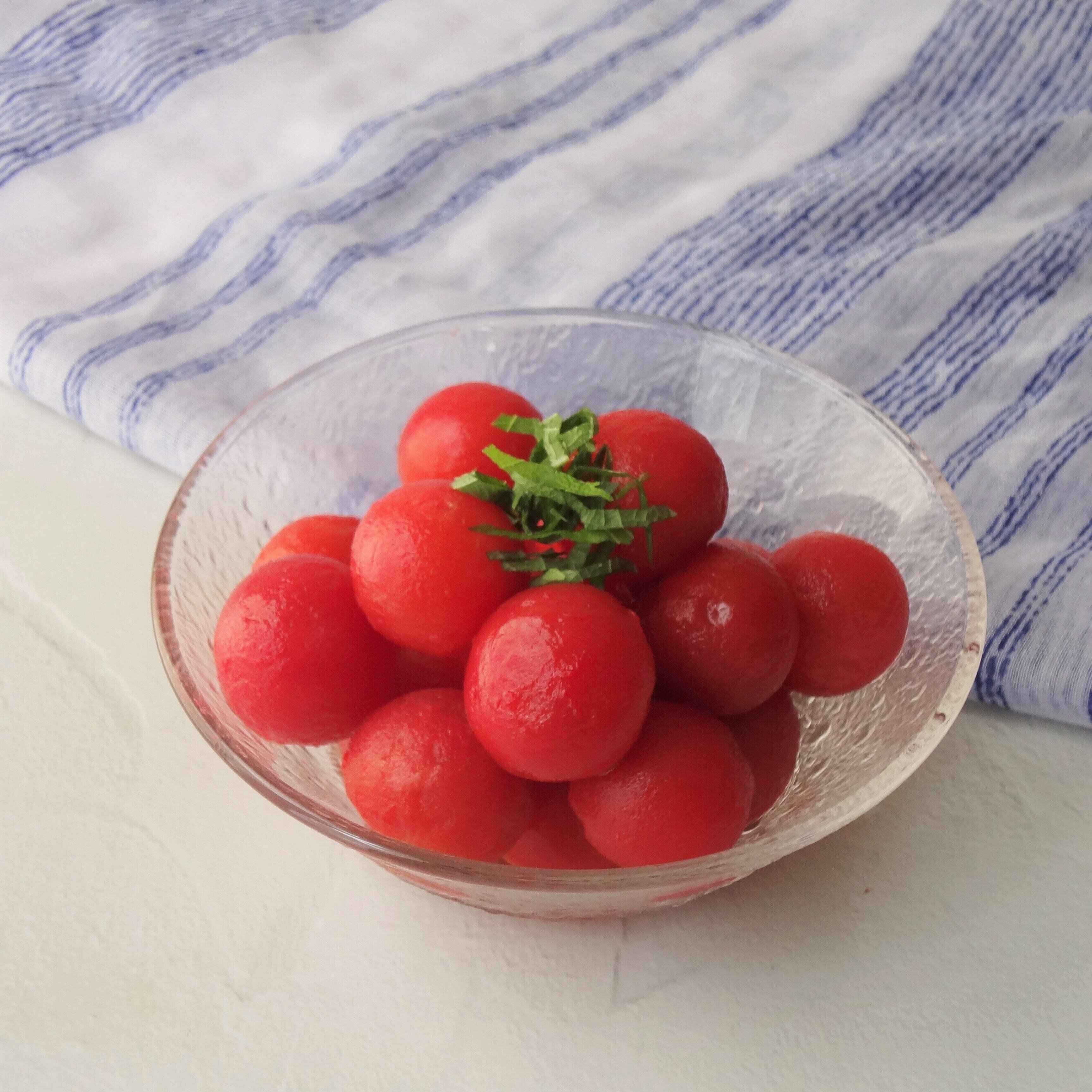 ミニトマトを沢山買ったときは、さっと洗って冷凍するのがオススメ。夏にぴったりなシャリシャリ食感で、パパッと作れる1品が楽しめるので是非お試しください。