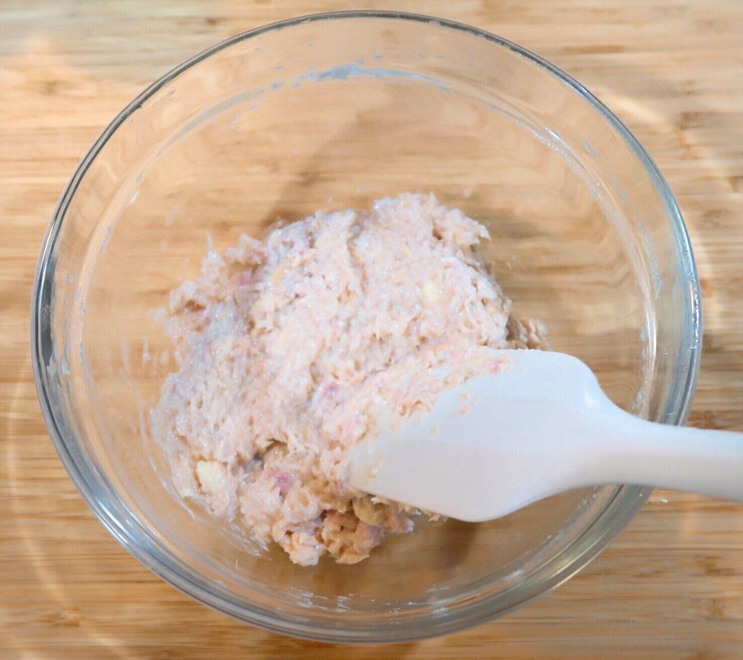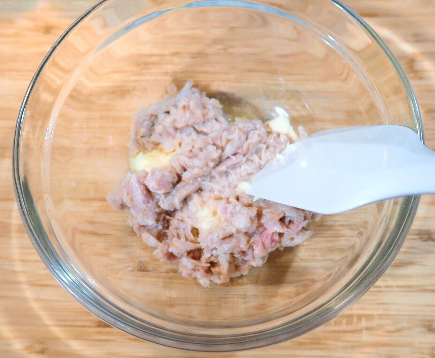 ボウルにやわらかくしたバター、油をきったツナを入れよく混ぜ合わせます。