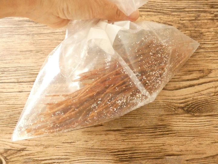 パスタを油に入れたら少しの間パスタに触らないようにすると、真っ直ぐキレイに揚がります。油の温度が高温だとあっという間に焦げてしまうので、低温から中温にするのがおすすめです。ポリ袋に入れて振り混ぜると、均一に味付けできます。