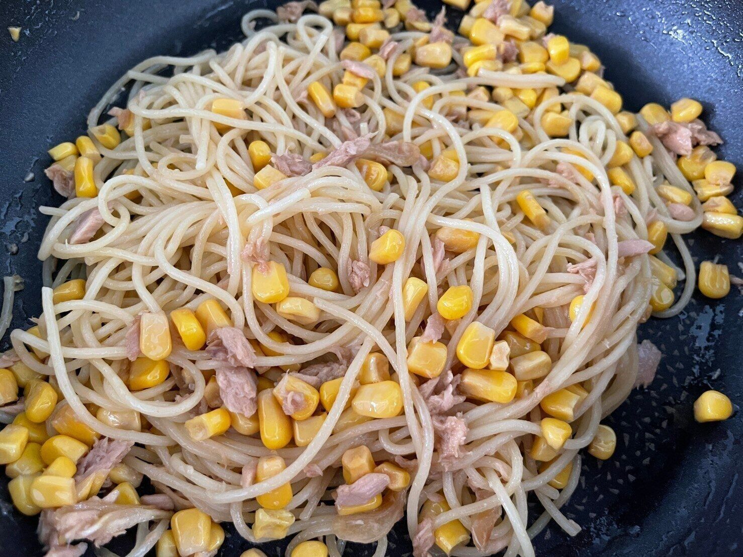 とうもろこしが主役!とうもろこしとツナ缶パスタ