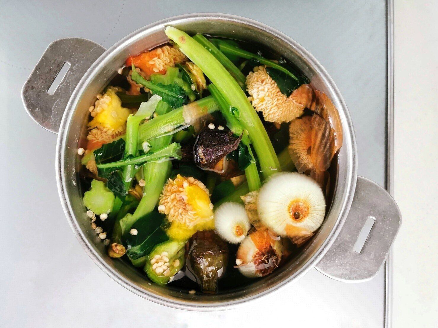 野菜カスをまとめて煮だしてだし汁に!