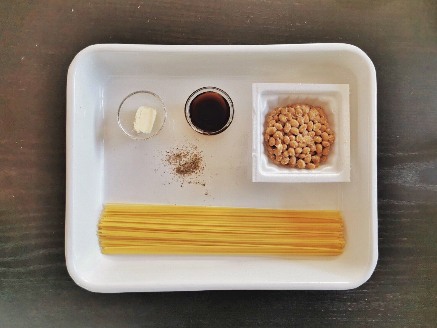(1)納豆、めんつゆ、ブラックペッパーを混ぜ合わせる。