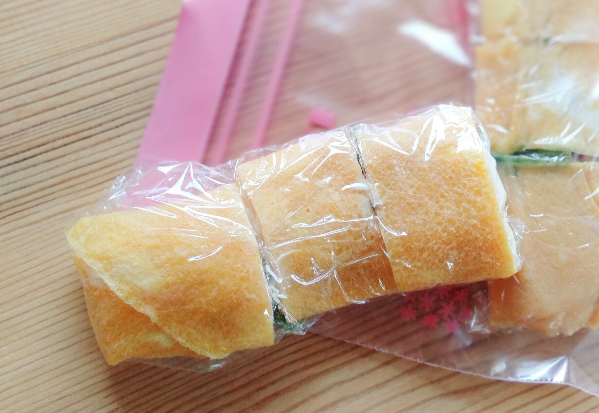 玉子焼きなどは週末多めに作り、分けてラップで冷凍。