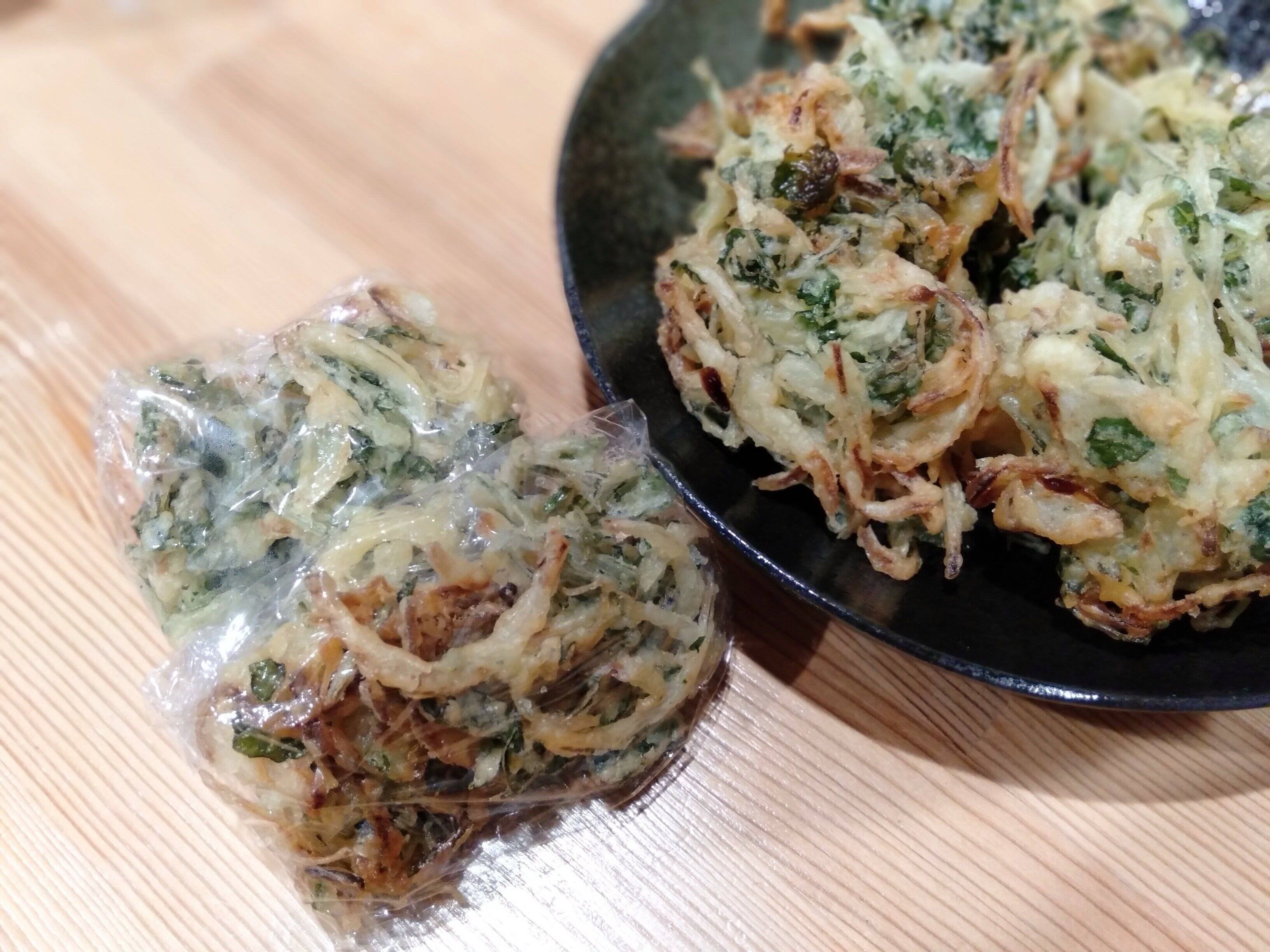 晩ごはんが揚げ物のときは多めに作り、揚げたてを先取り、ラップで冷凍。