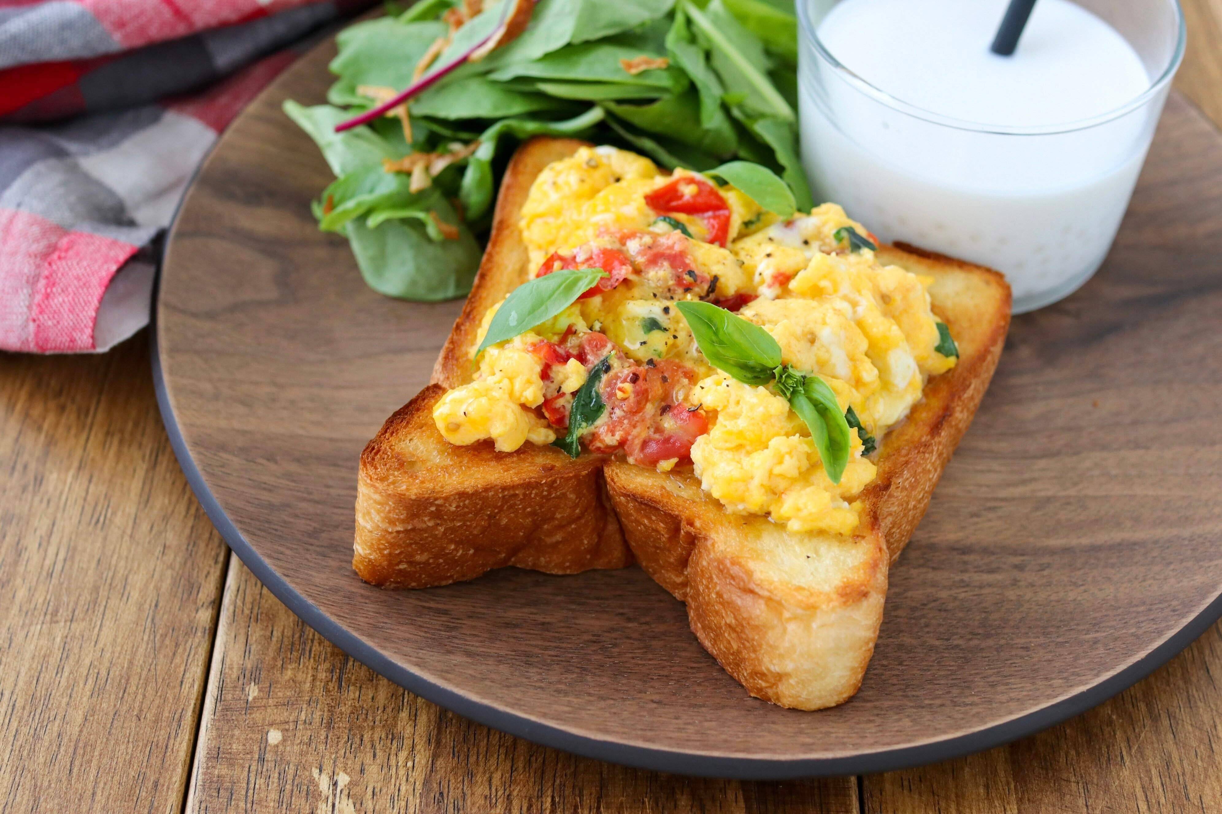 ちょっと楽をしたい休日の朝は、レンチン&トースターだけでつくる、楽ちんオープンオムレツトーストはいかがでしょうか。ボリュームもあるので、朝ごはんだけでなく、簡単ランチにもおすすめです♪