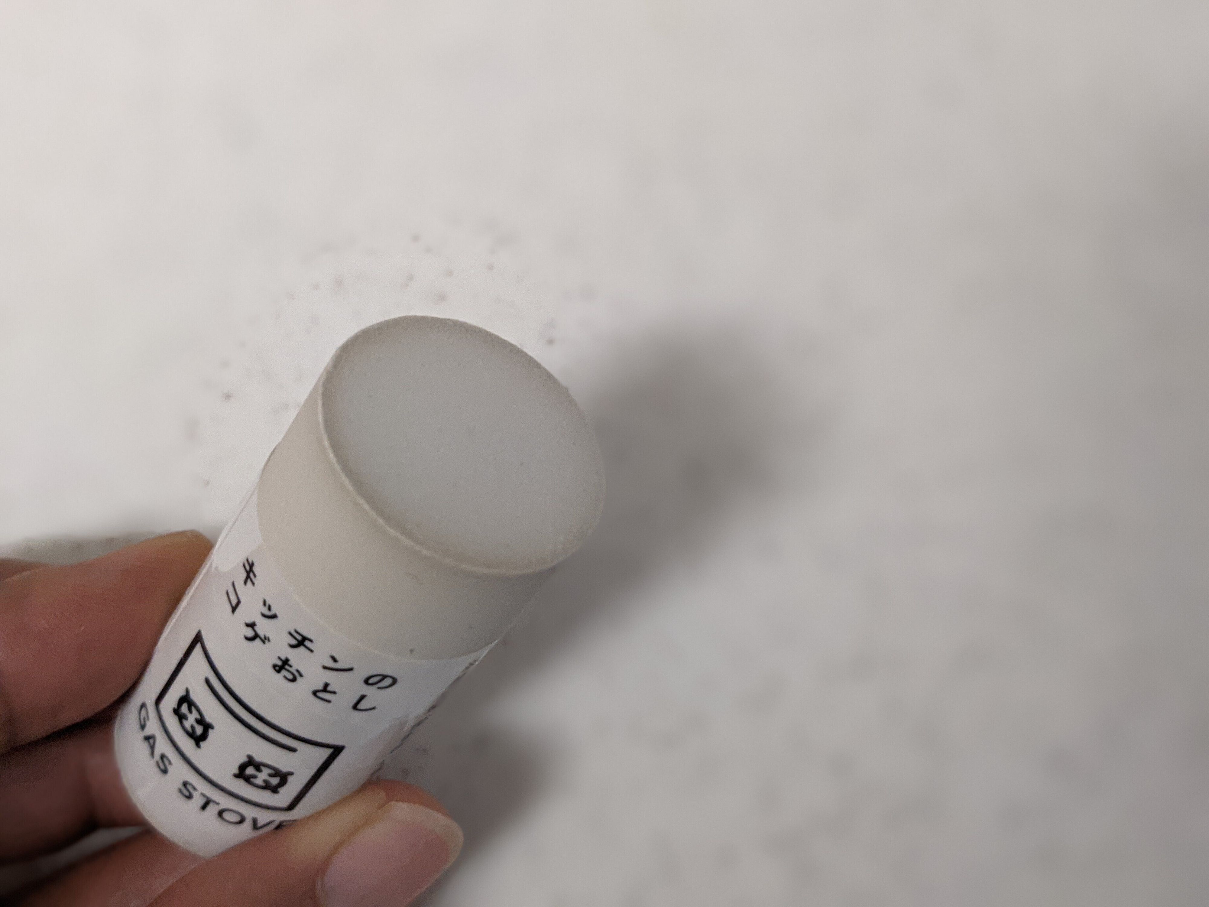 スティック状になっていてこのまま使用します。硬い消しゴムみたいな感じ。