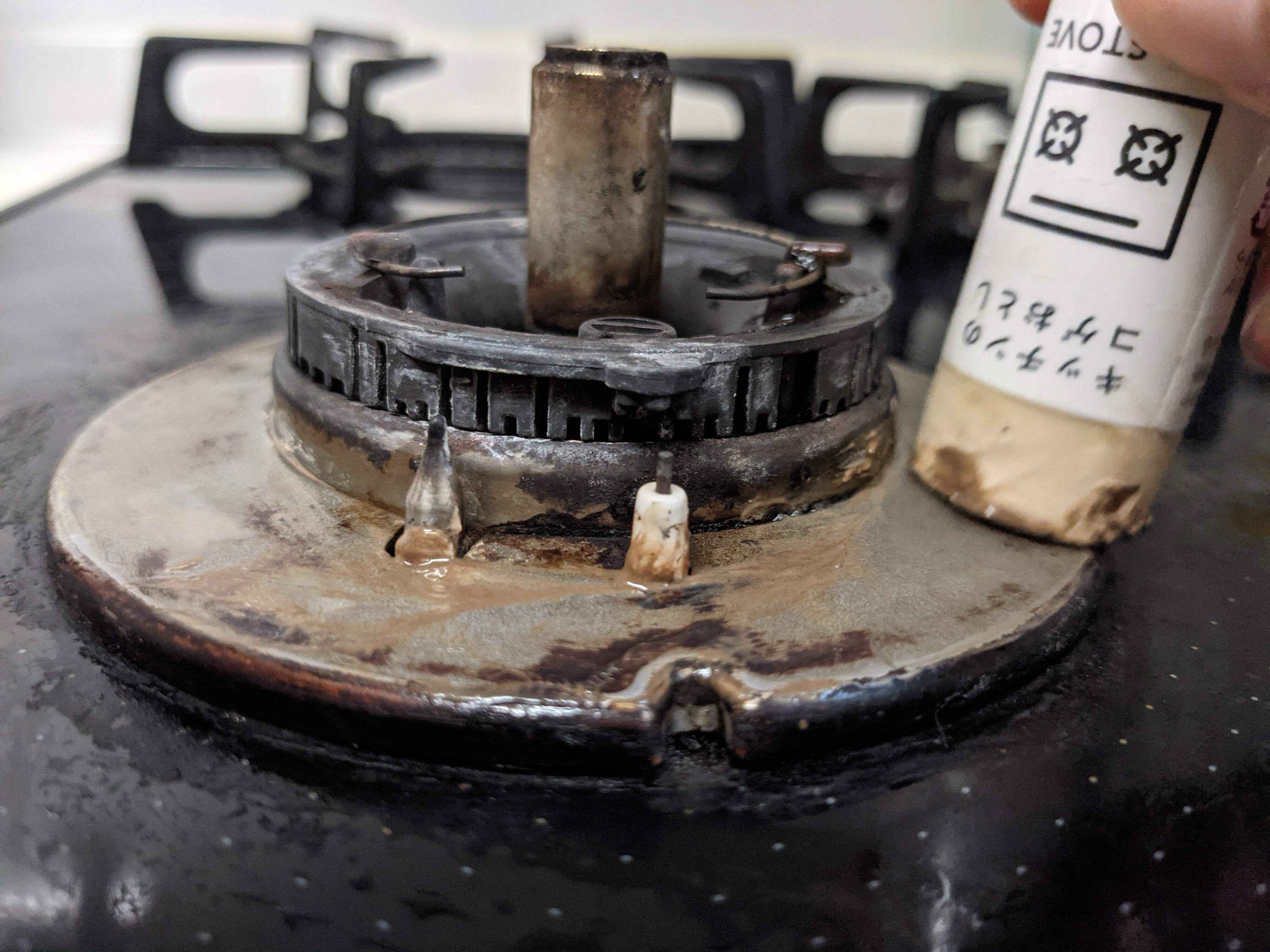 もう言い訳を並べててもしょうがないので、お見せすると、我が家のコンロはこんな状況でした。
