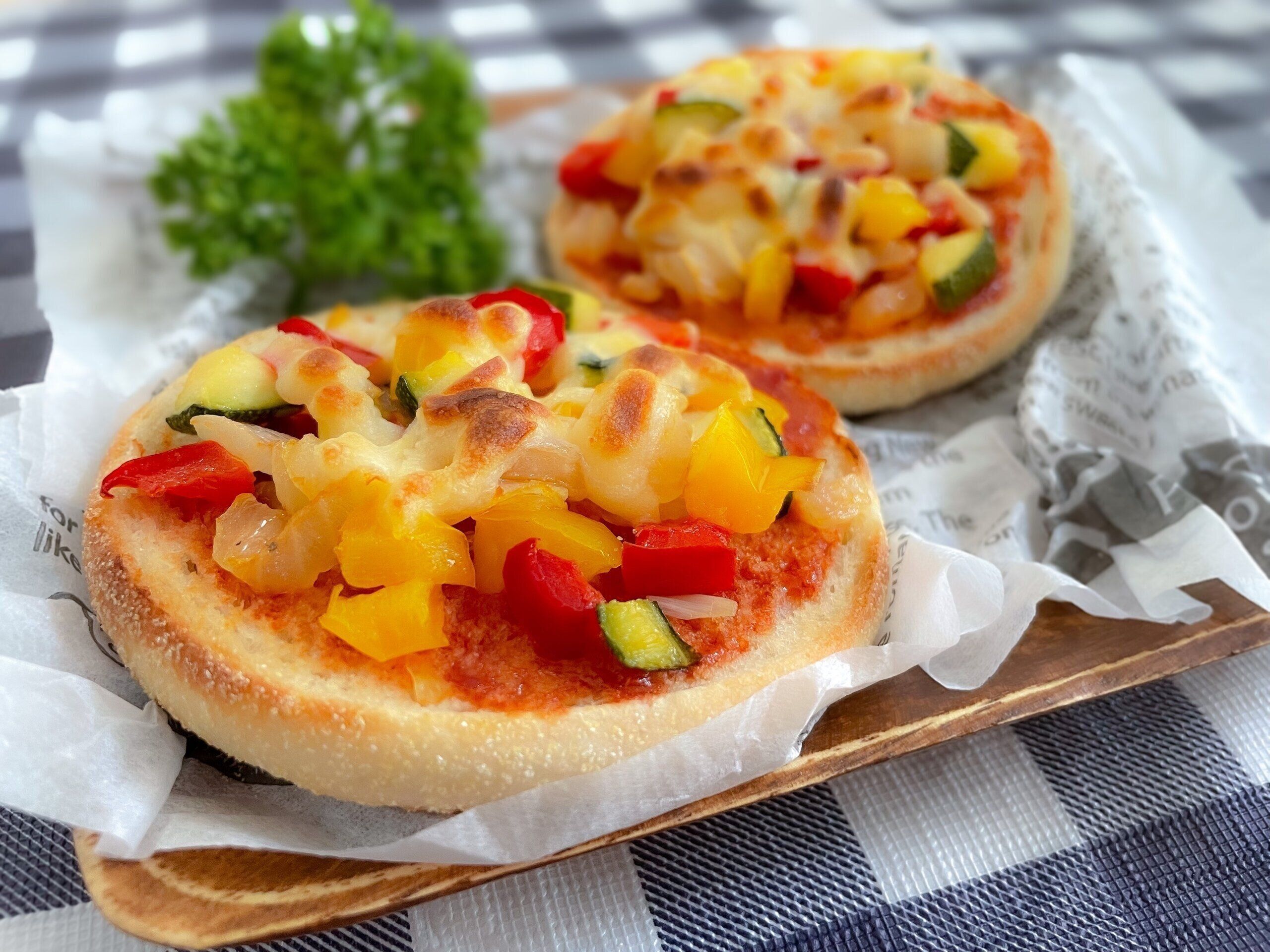 パンにトマトソースやピザソースを塗り、凍ったままの彩り野菜ミックスとピザ用チーズをのせたらトースターで焼くだけ。パパっと食べたい朝ごはんや、仕事をしながら片手で食べたい時でも野菜をしっかり食べられます。