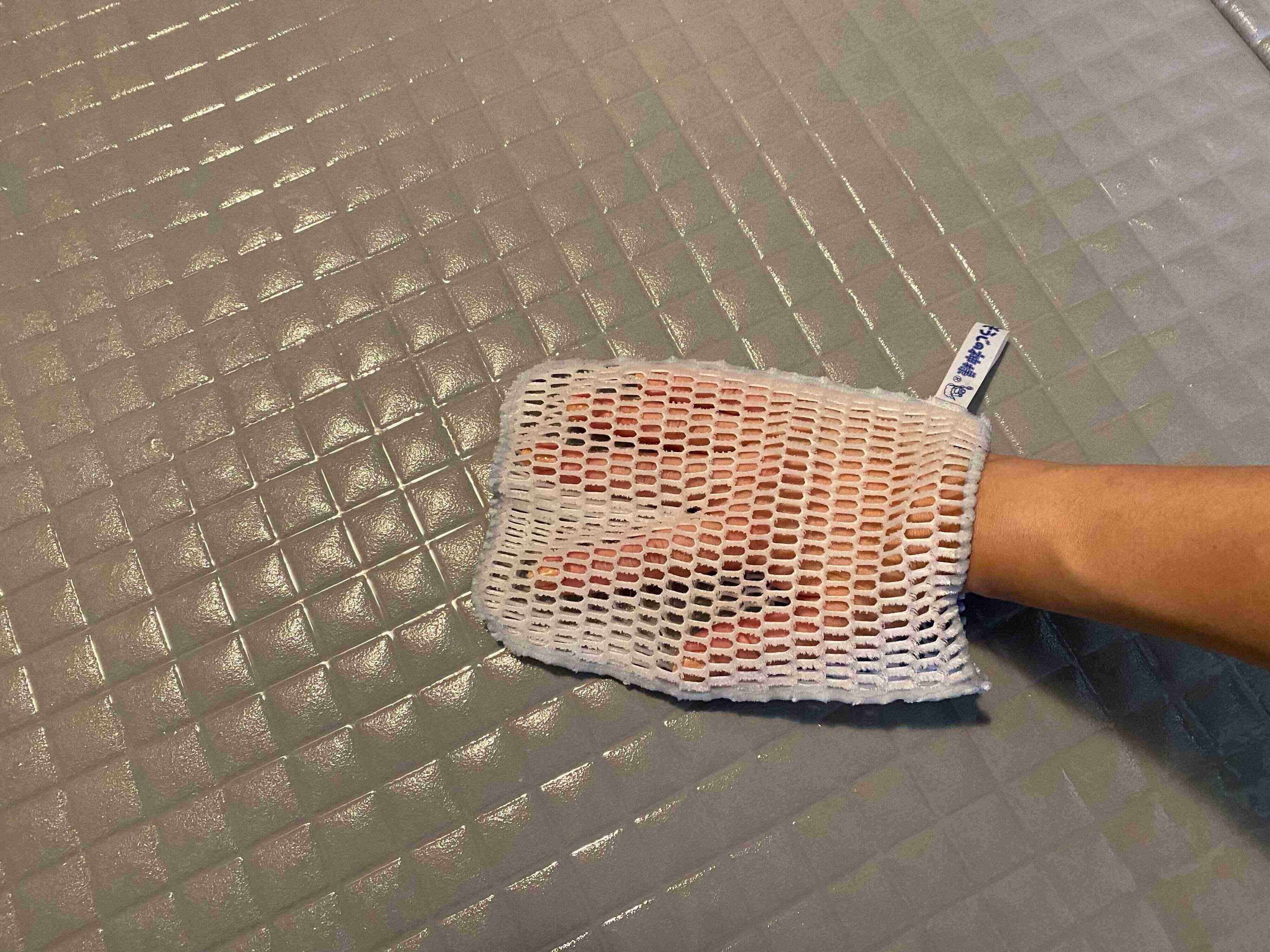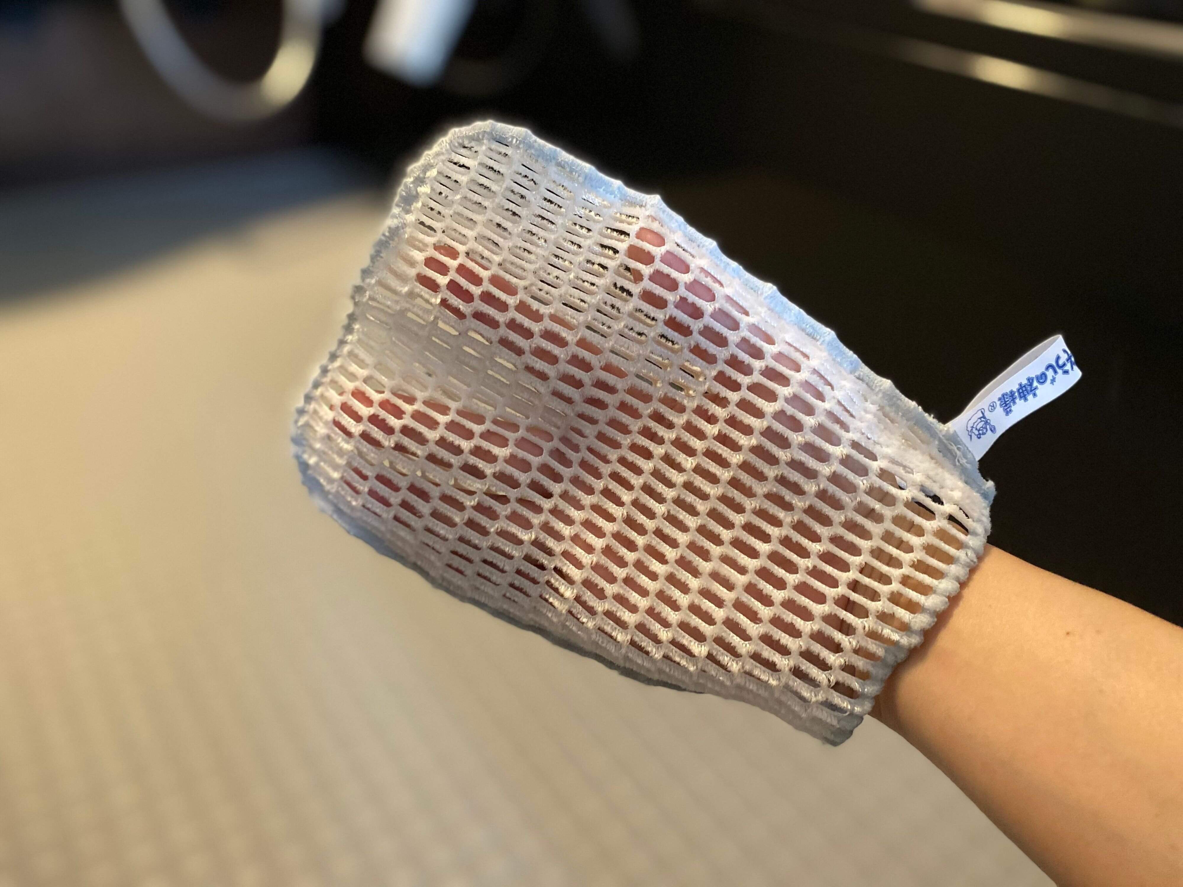 ミトンタイプなので撫でるようにしたり握るように洗ったりと自由自在です。