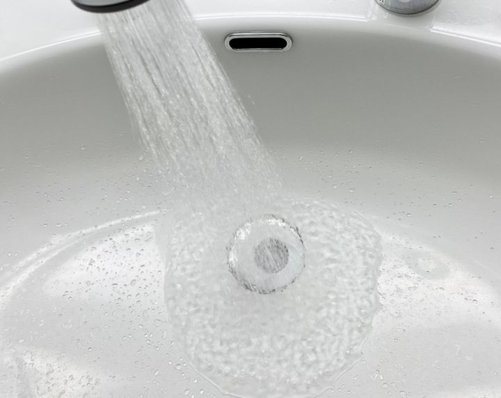 使い方は簡単。洗面台にある付属の栓を外し、こちらの商品を排水口にはめるだけ。