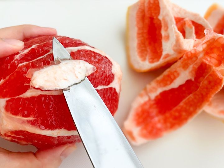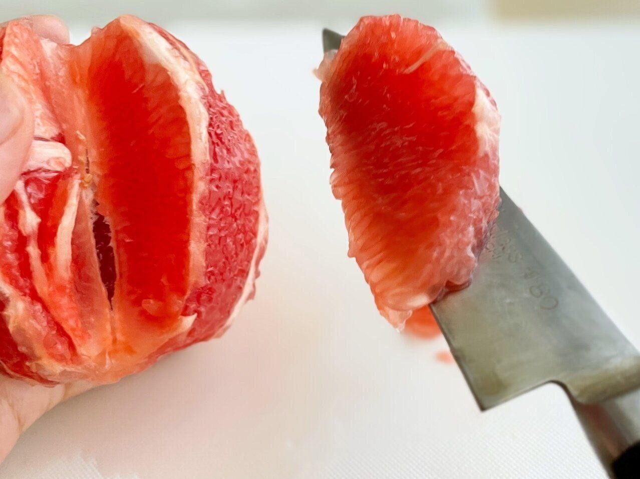 カフェやスイーツ店などで、果肉だけがきれいに取り出されているグレープフルーツの切り方、どのようにしているかご存知ですか?グレープフルーツは皮が厚いので包丁を使わなければ切れず、何気なくザクっと切るだけでは特別映える切り方にはならないですよね。