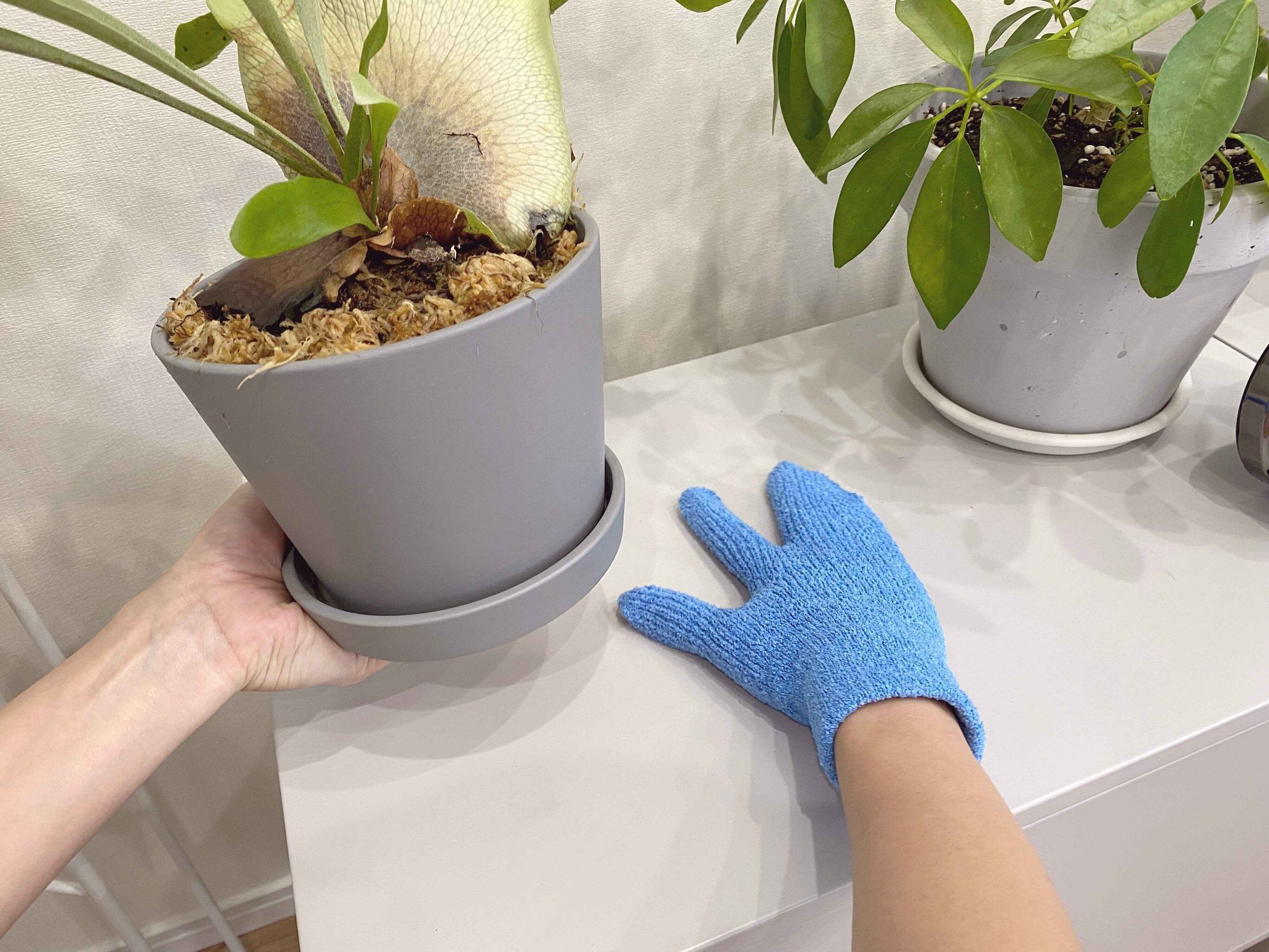 はじめから濡らした雑巾を使ったり洗剤を付けて掃除をするとホコリが伸びてしまうだけになるので、ホコリ掃除をするのならお掃除手袋がおすすめです。掃除で大活躍しているそうじの神様の「おそうじ手袋」は、乾いたままサッと手にはめてサッと使えるアイテムです。