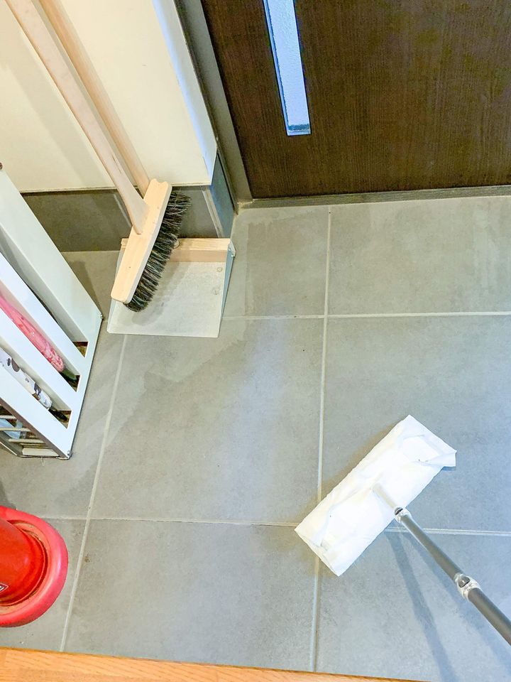 玄関を丁寧に掃除する