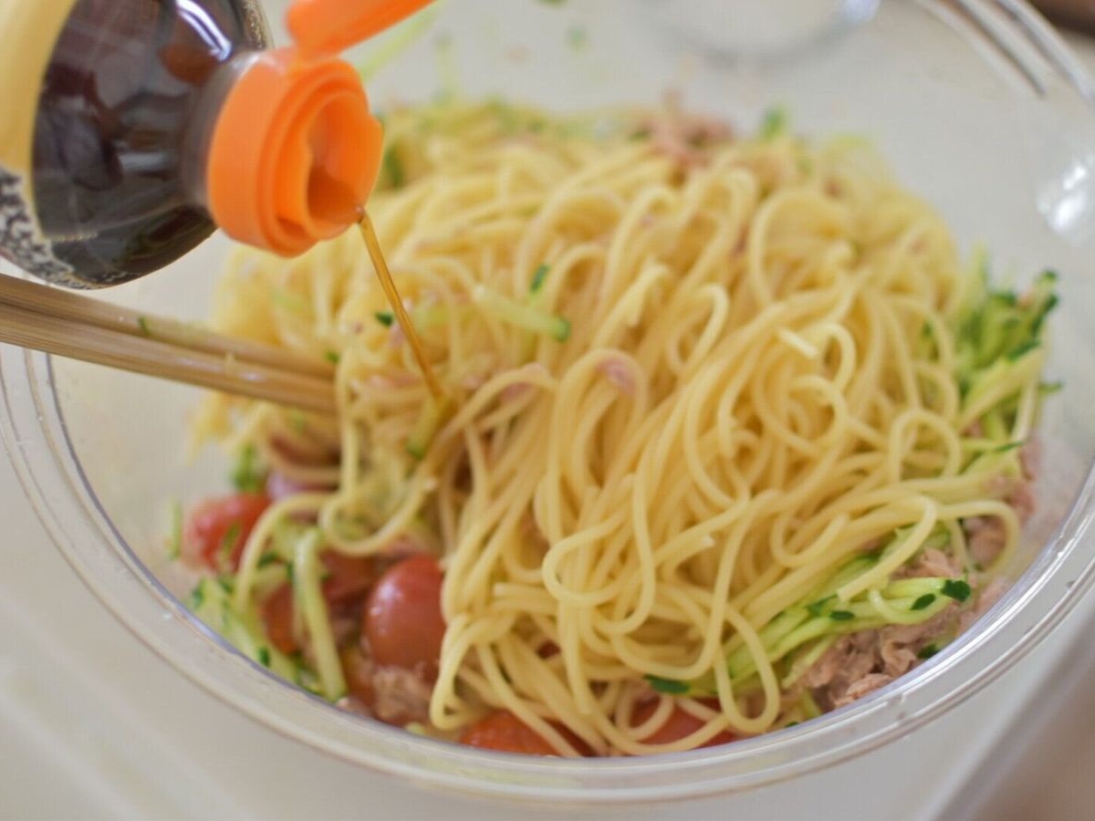 他にも大葉やトマトを加えたサラダ風パスタにしてもさっぱりといただけますよ。