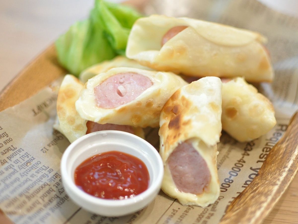 餃子の皮で作る簡単ドック。材料3つで巻くだけなので、餃子を作るよりもはるかに簡単です。