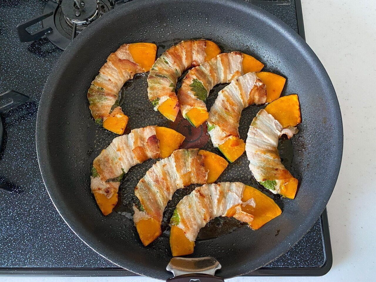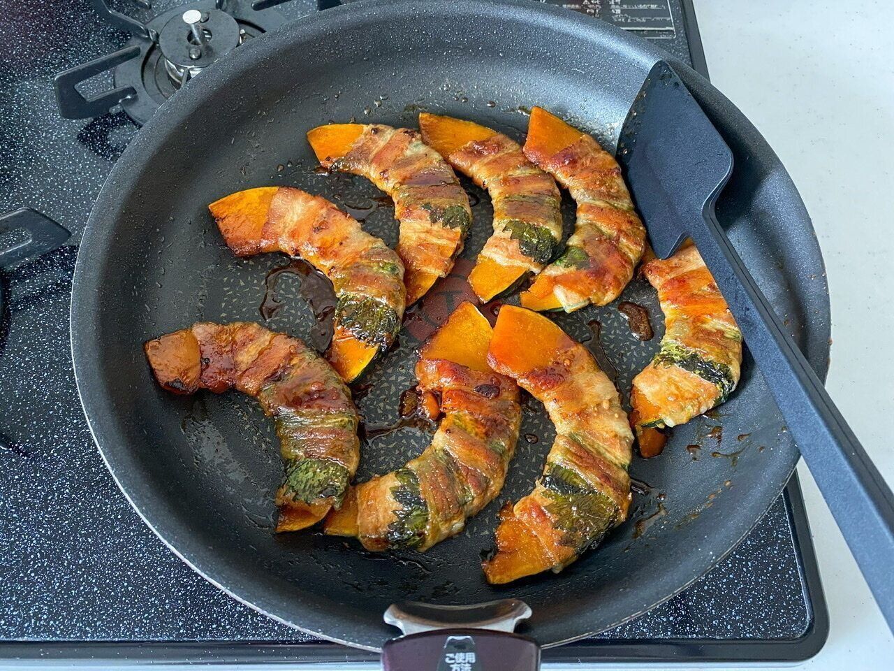 『肉巻きかぼちゃのはちみつ醤油焼き」レシピ