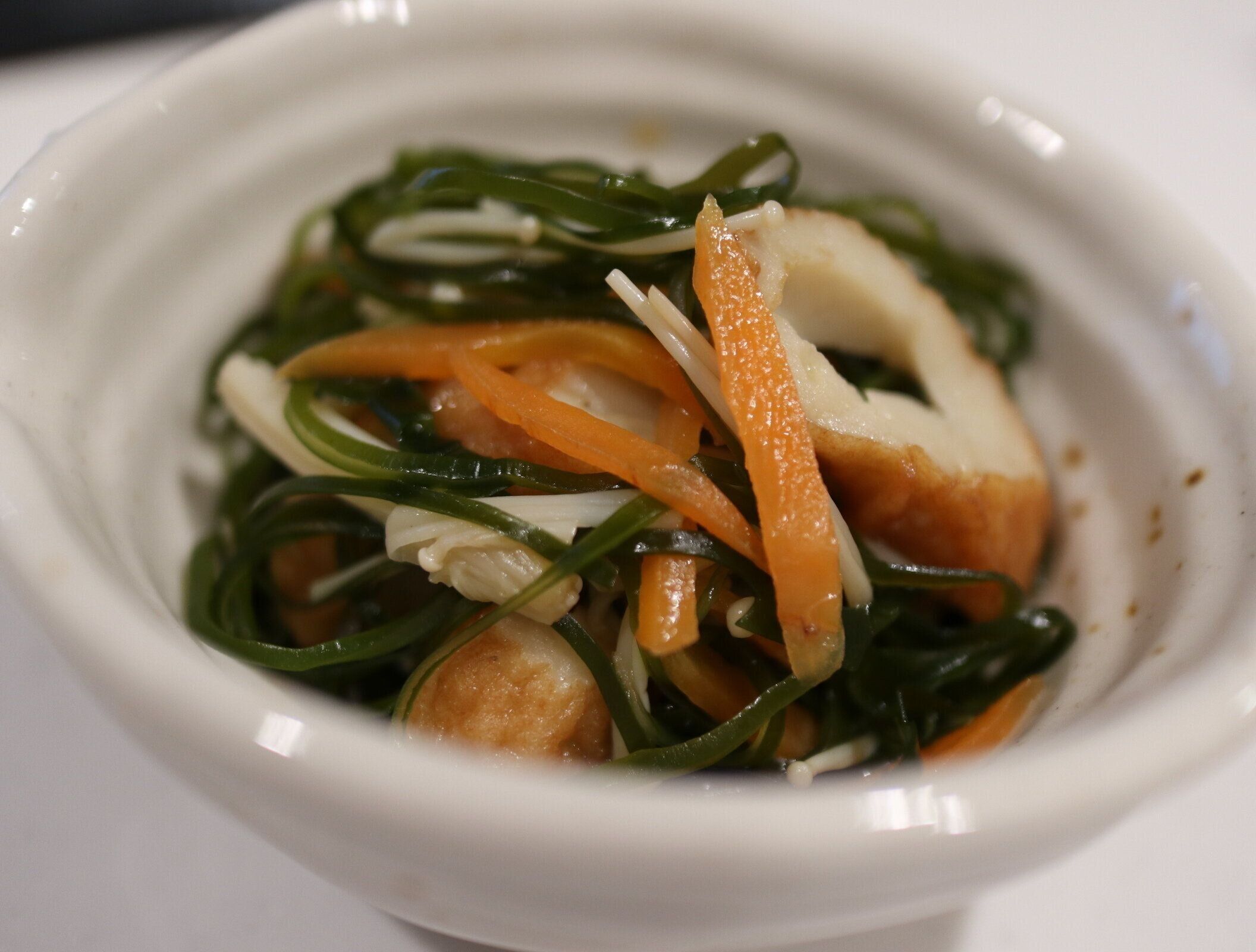 1.フライパンにごま油を熱し、にんじん→えのき→ちくわ→切り昆布の順に炒める。
