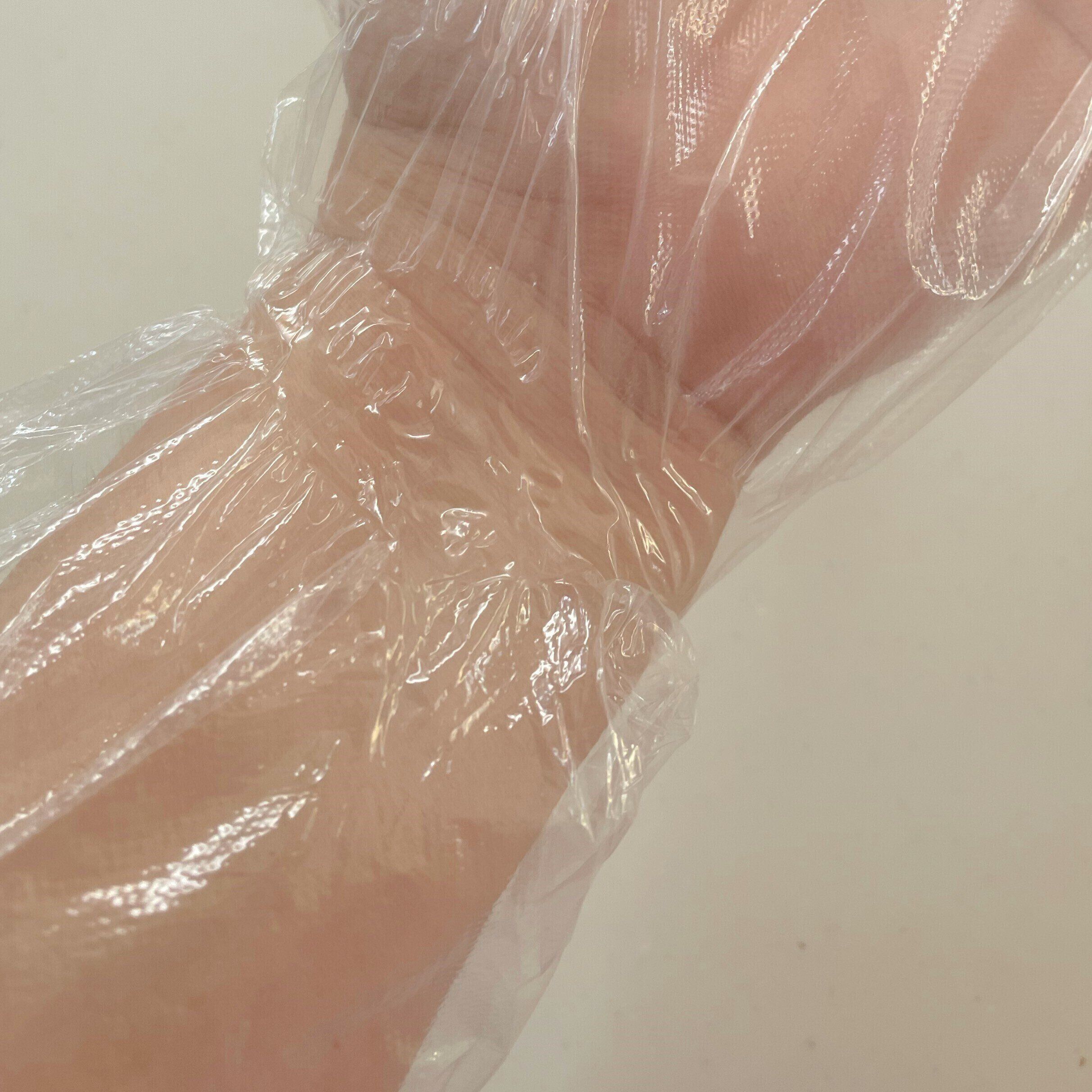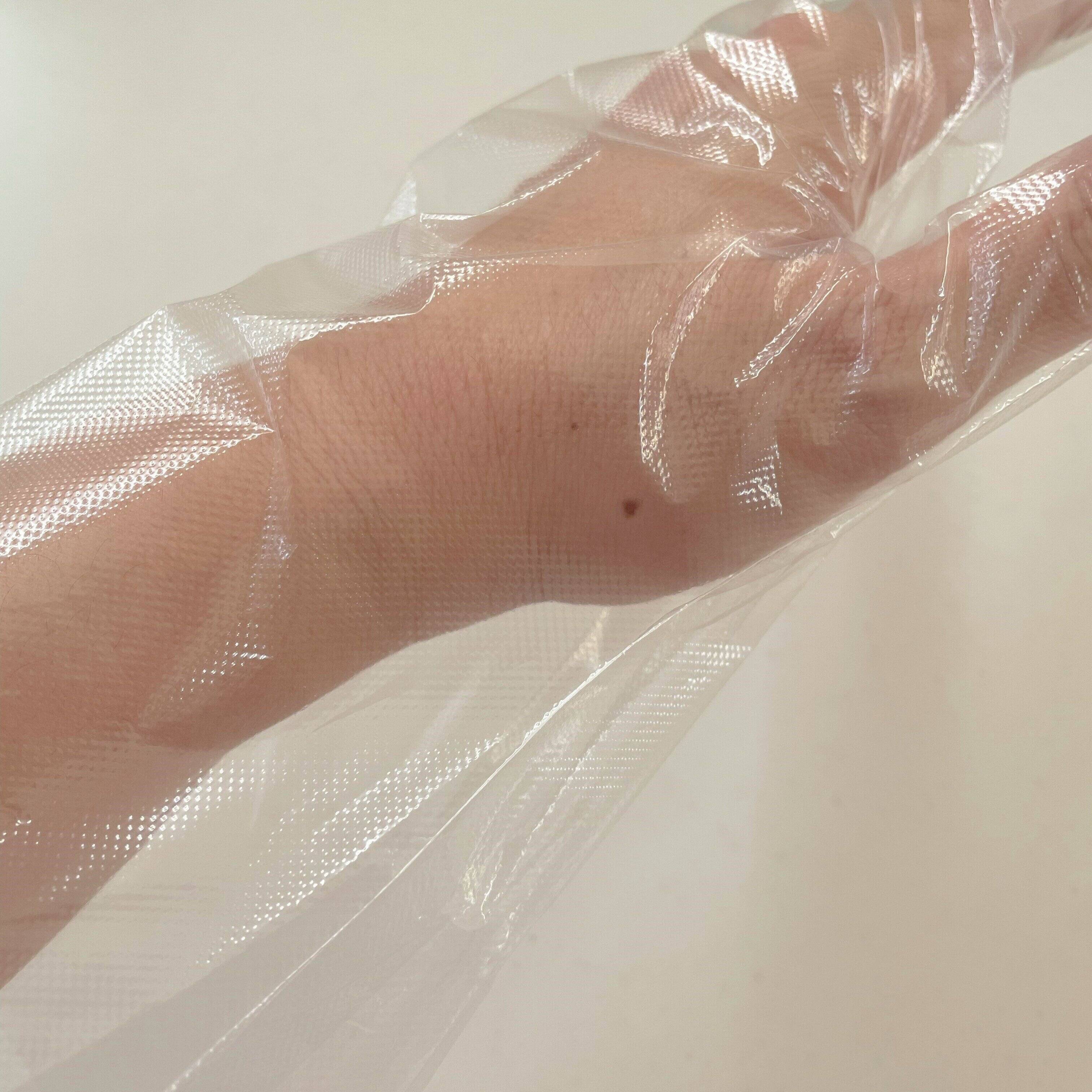 『手首にフィットするポリエチレン手袋』