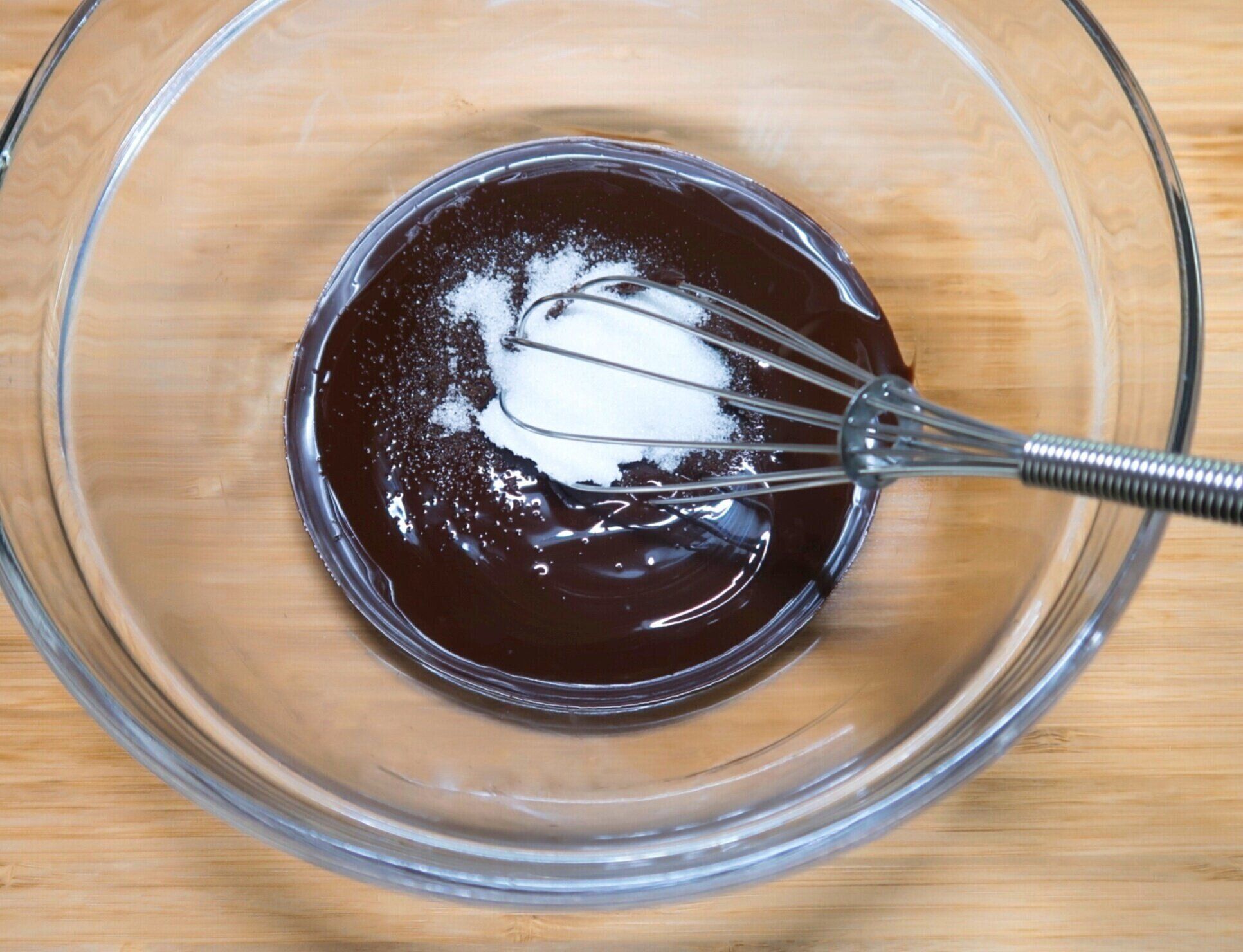 湯せんからはずし、砂糖を加え泡立て器で混ぜます。
