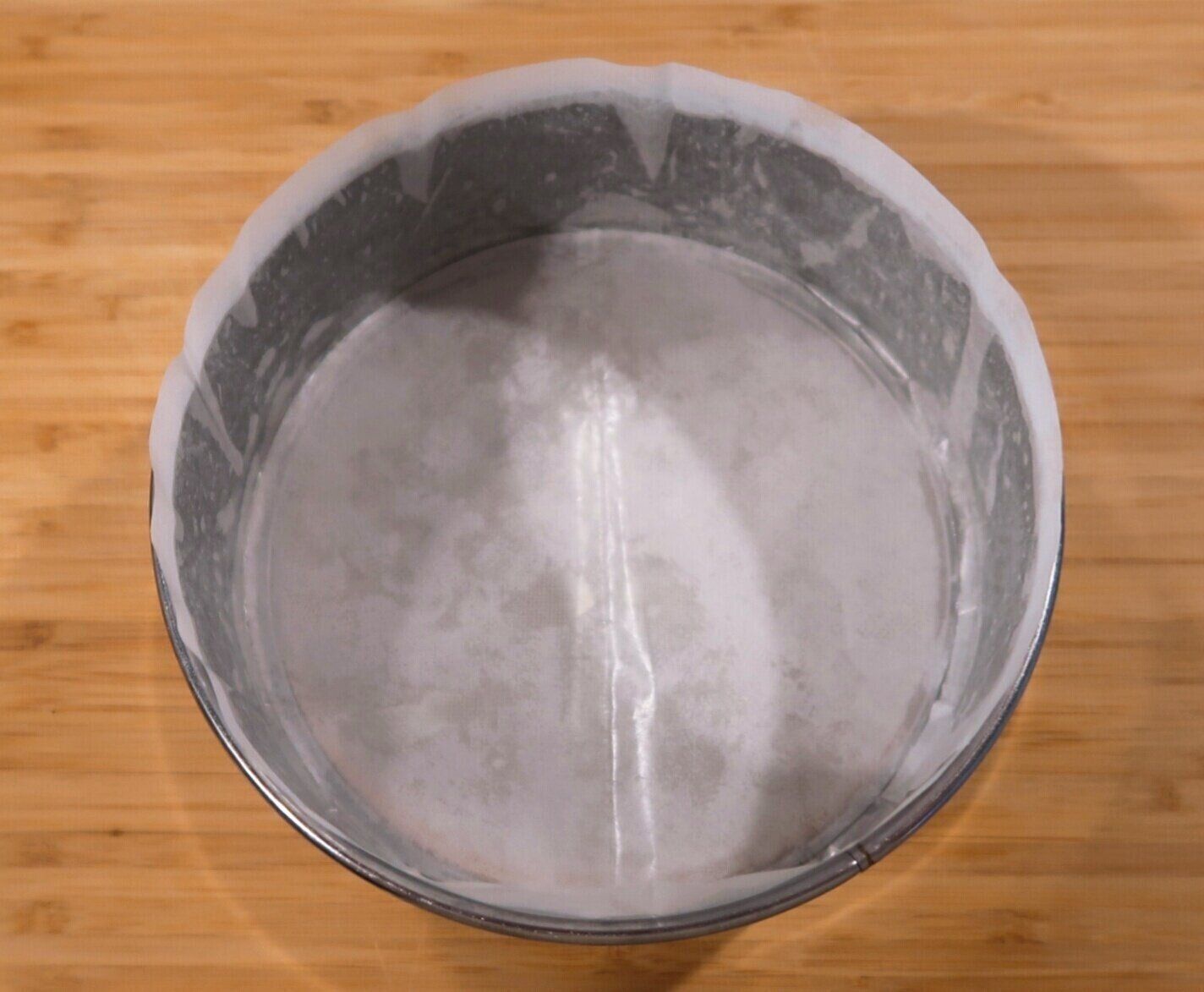 型の内側に少量のバター(分量外)をぬり、クッキングシートをしきます。