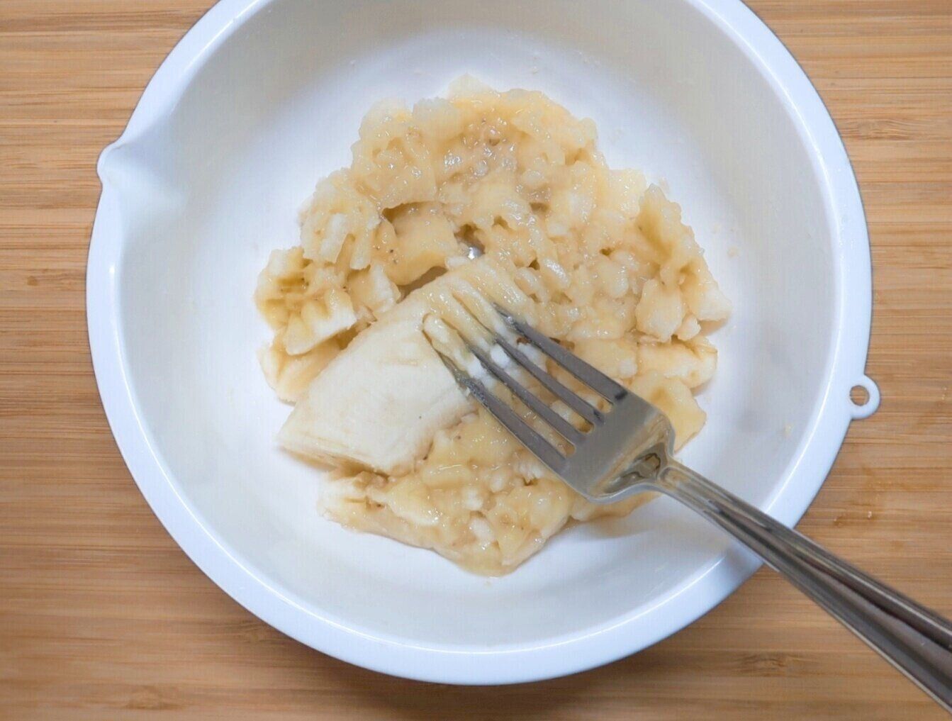 残りのバナナをマッシャーまたはフォークでつぶします。