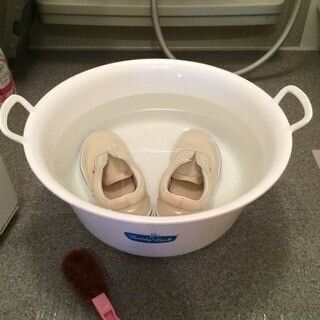 靴がプカプカ浮いてつけおきにならないぞ!!という時は靴の上に重りを置いてください。私はよく2リットルのペットボトルに水を入れて重しとして使っています。