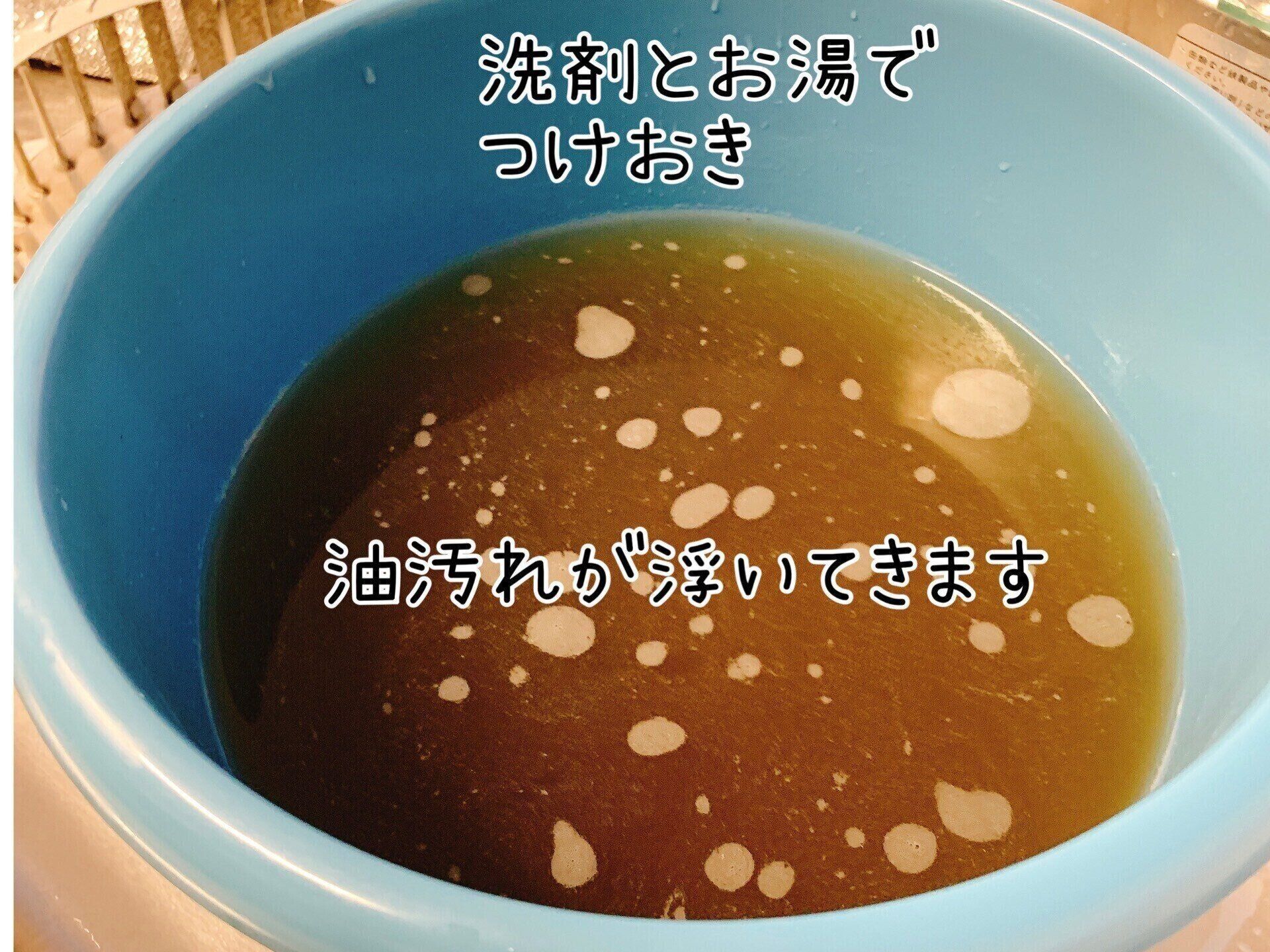 ひどい場合は、せっかくバケツ内で溶けた油がお湯の温度が下がることで再度かたまり、つけ置きしていたパーツに再度付着します。これでは何度もバケツ内にお湯をつぎ足ししないといけません。そうなると洗剤も薄まるので、洗剤も追加せざるを得ません。