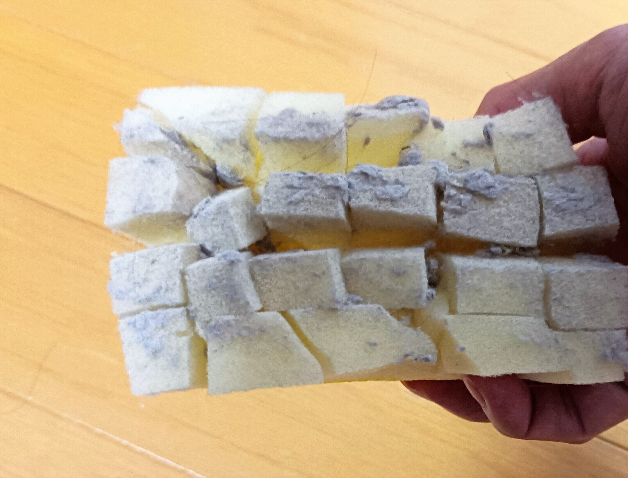 そして掃除につかったスポンジはこのようにホコリをたっぷり集めてくれています。