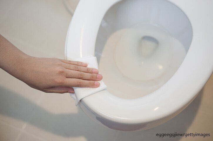 私が毎日掃除する場所は便座や便器周り、床や壁。洗剤をトイレットペーパーに吹きかけて、ササッと拭くだけです。