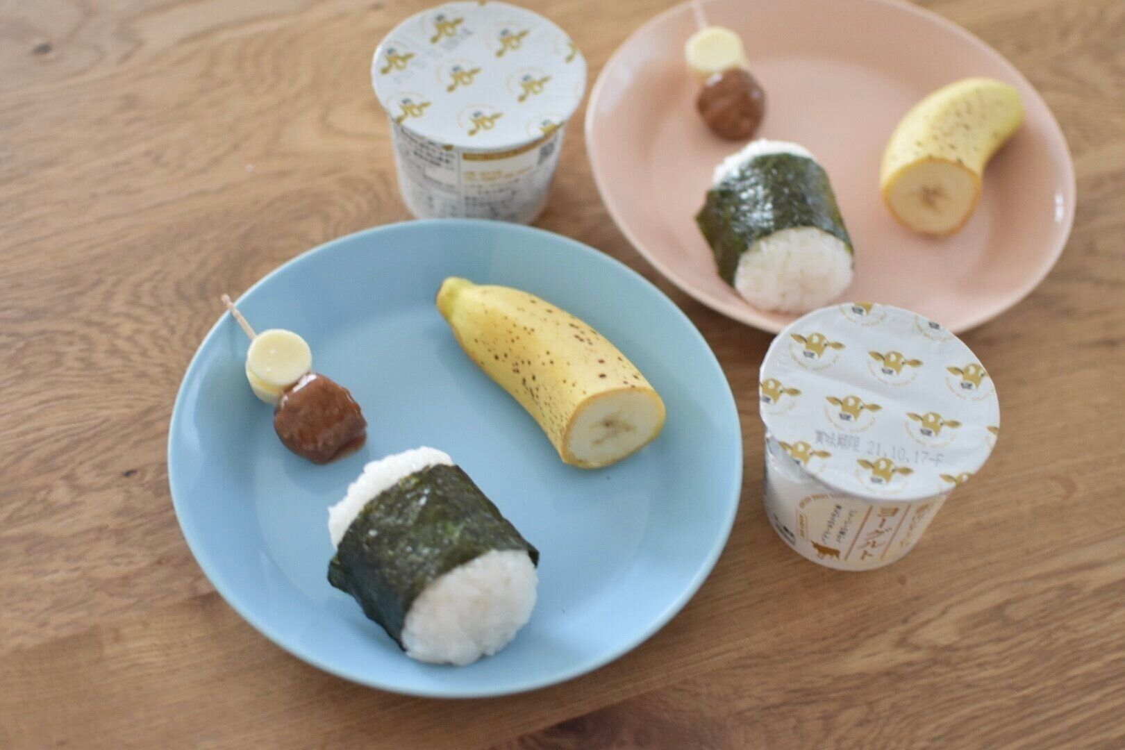 ごはん、おかず(ウインナー、ミートボール、納豆など)バナナが定番。