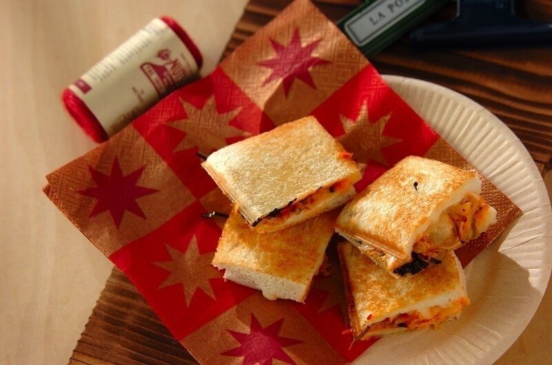 キムチとチーズの相性がバッチリのホットサンドです。ごま油と刻み海苔の香りが加わることで、食べたときの満足感を高めてくれるでしょう。