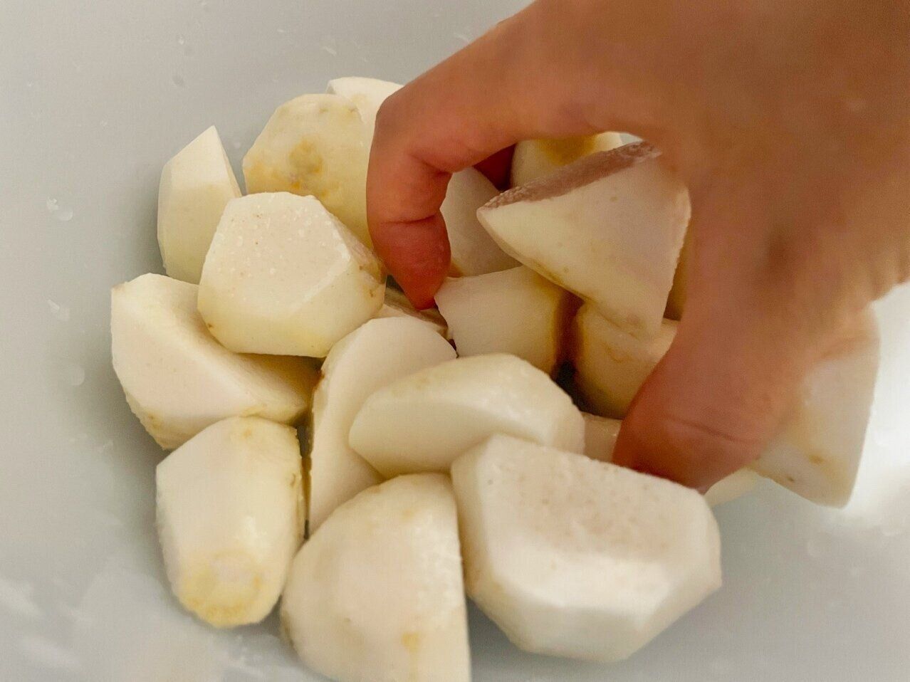 多くの野菜が下処理の前に水洗いをすると思うのですが、里芋は水にぬれるとぬめり成分が出てきます。
