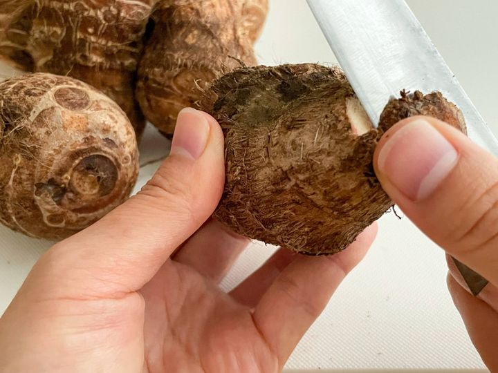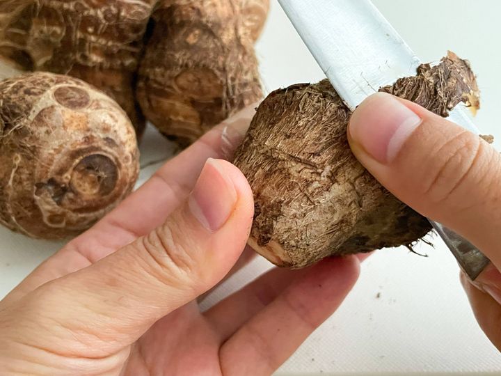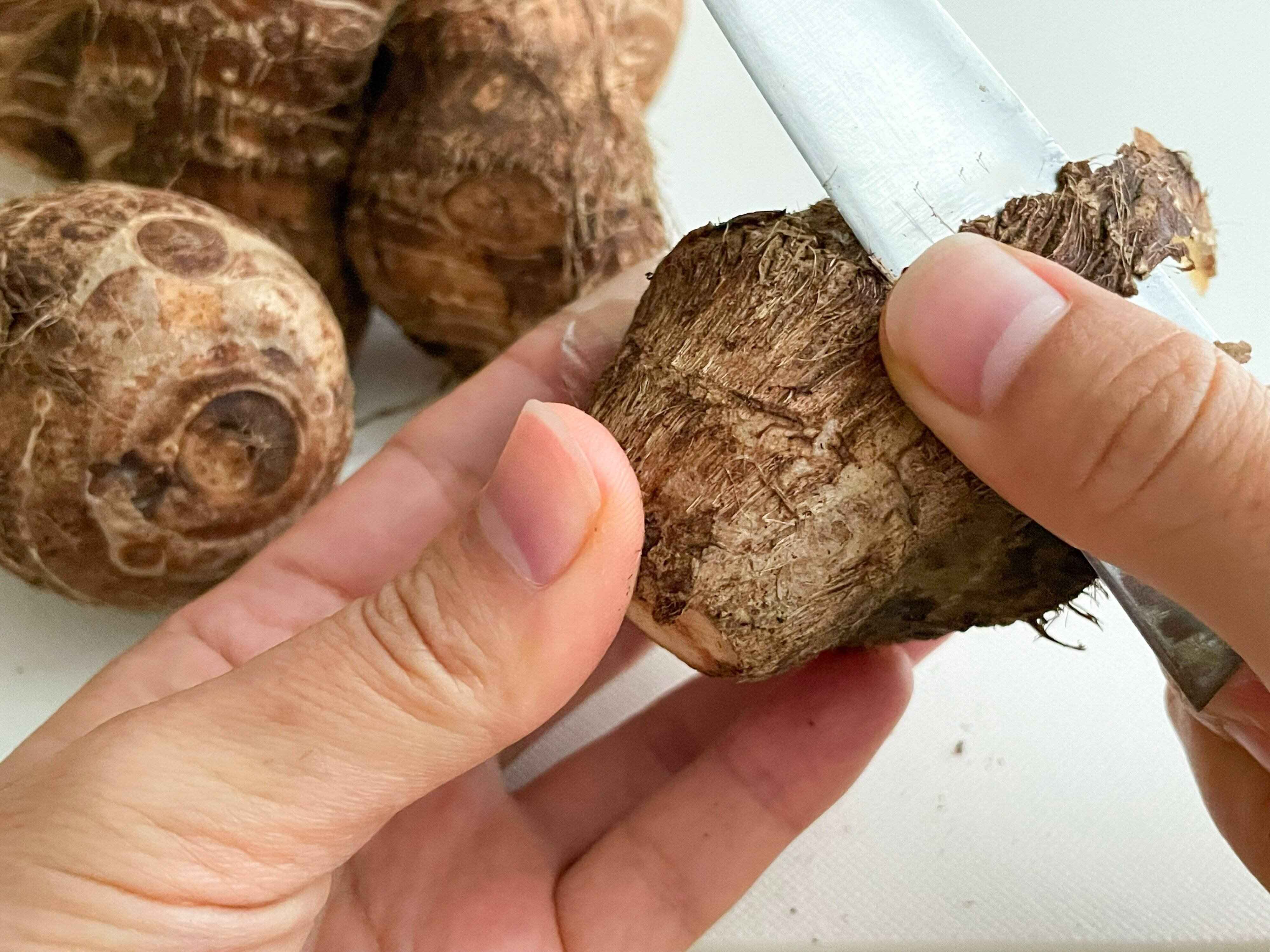 泥をおとした洗い里芋として売られていることが多いので、水洗いせずそのまま皮をむきましょう。包丁やまな板などの調理器具も乾いた状態にしておくのがおすすめです。
