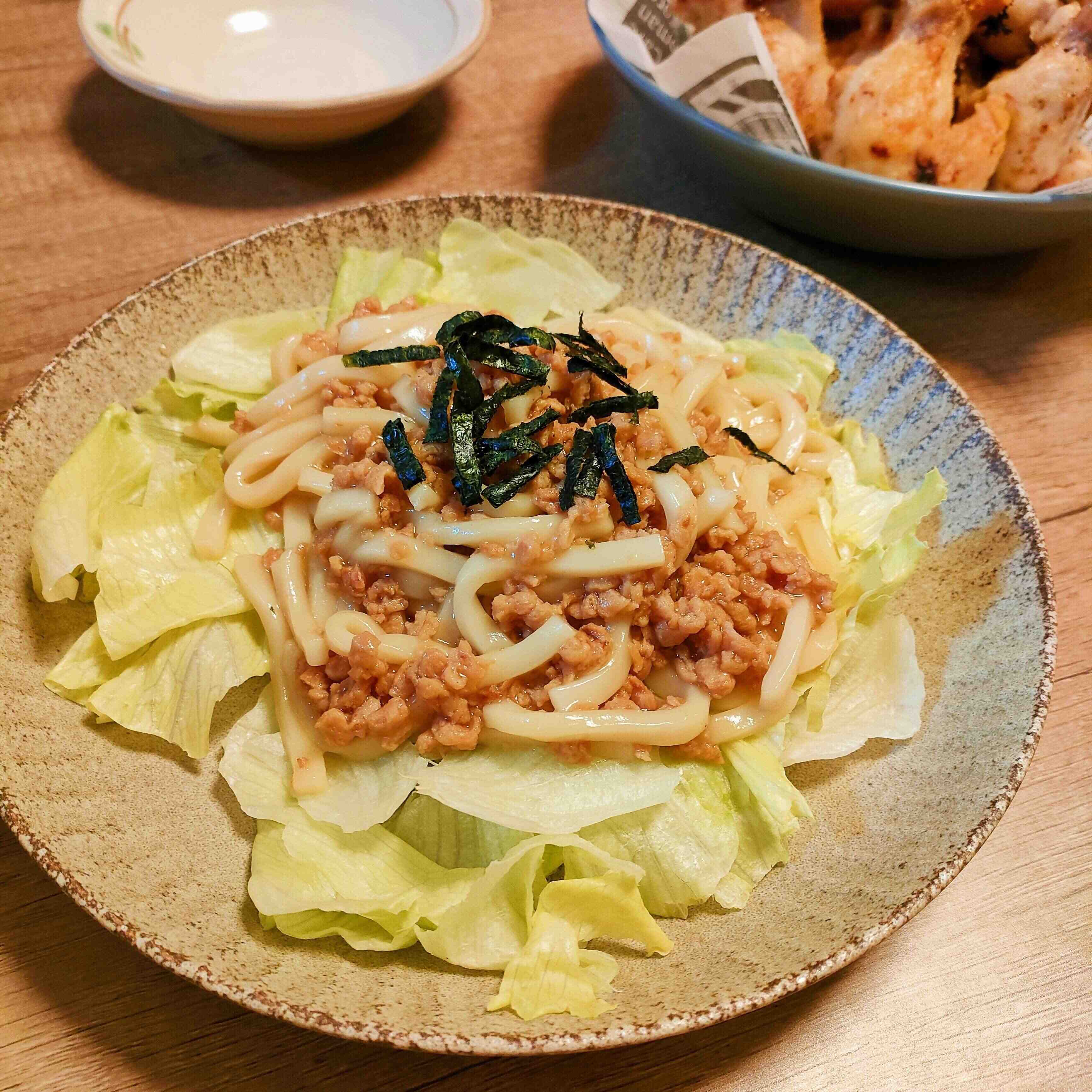ボリュームありのメインにもおかずにもなるサラダうどん。ひき肉を使うことで、満足感も十分に味わえます。お好みで大葉をちらしたり、白髪ネギをのせてもおいしいです!