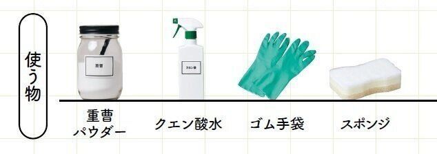 重曹の上からクエン酸水をスプレーする。重曹とクエン酸が混じると「シュワー」と泡立ち、汚れを効率的に浮き上がらせることができる。