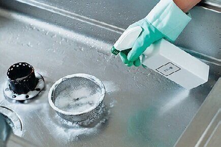 発泡が収まったらスポンジでこすり、残っている汚れを落とす。最後に水ですすげば完了。