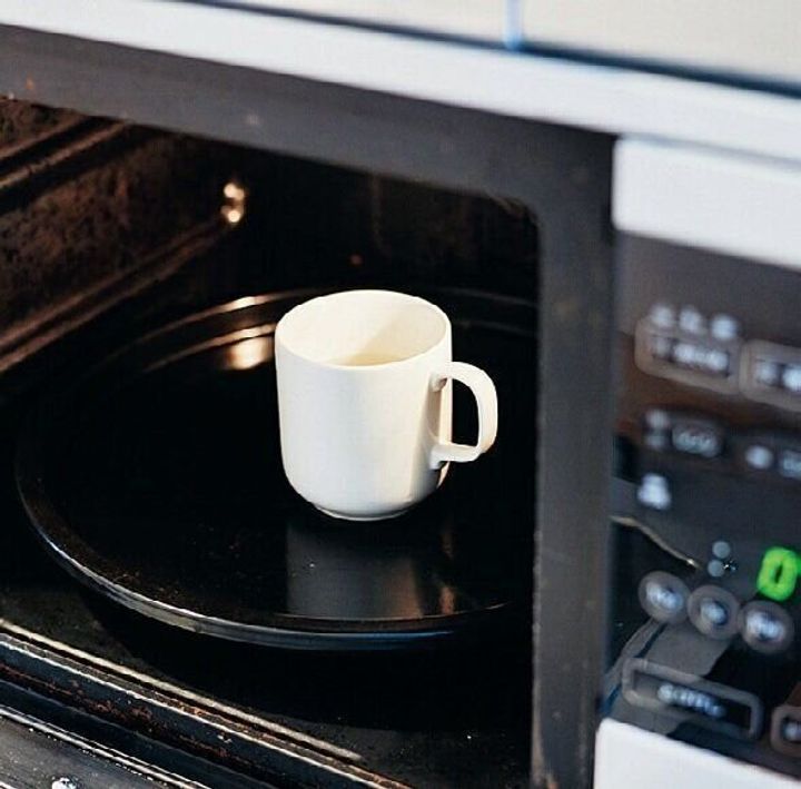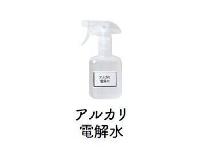 水200mlとアルカリ電解水(5プッシュ程度)を入れた耐熱容器を電子レンジに入れ、500Wで3分加熱。15分放置して電子レンジに水蒸気を行き渡らせたら軍手で内部を拭く。