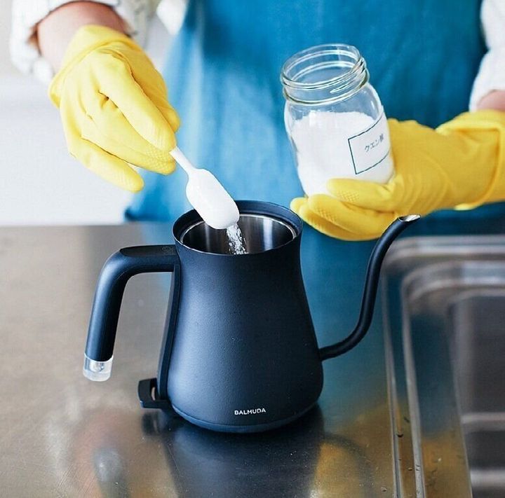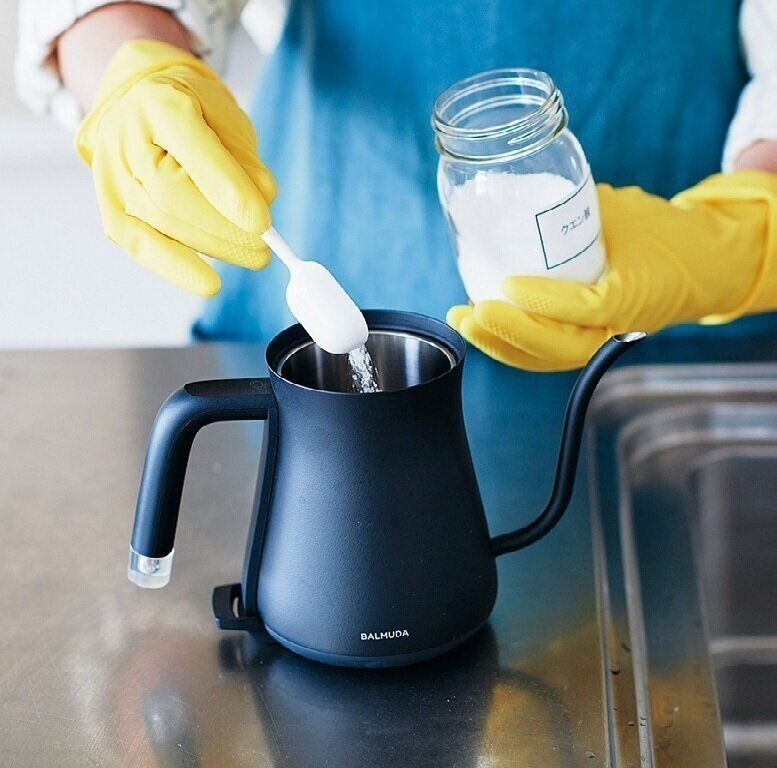 水を満水まで入れ、クエン酸パウダーを大さじ1程度加えてからスイッチを入れる。沸騰後、2時間放置する。水を捨て、再び満水まで水を入れ、沸騰させてからお湯を捨てれば完了。