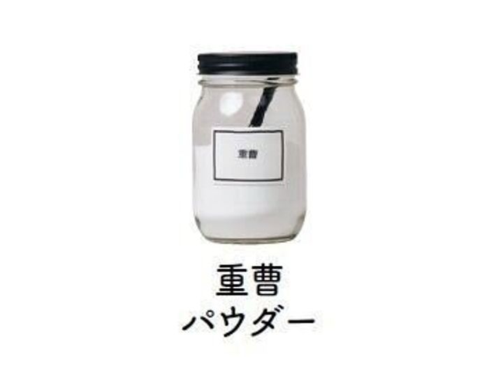 鍋の内側の焦げつき部分が隠れるまで重曹パウダーを入れ、50~60℃のお湯を注ぐ。重曹が溶けてしまったらペースト状になるように追加。そのまま30分放置し、アルミホイルを丸めた物で焦げをこすり落とす。