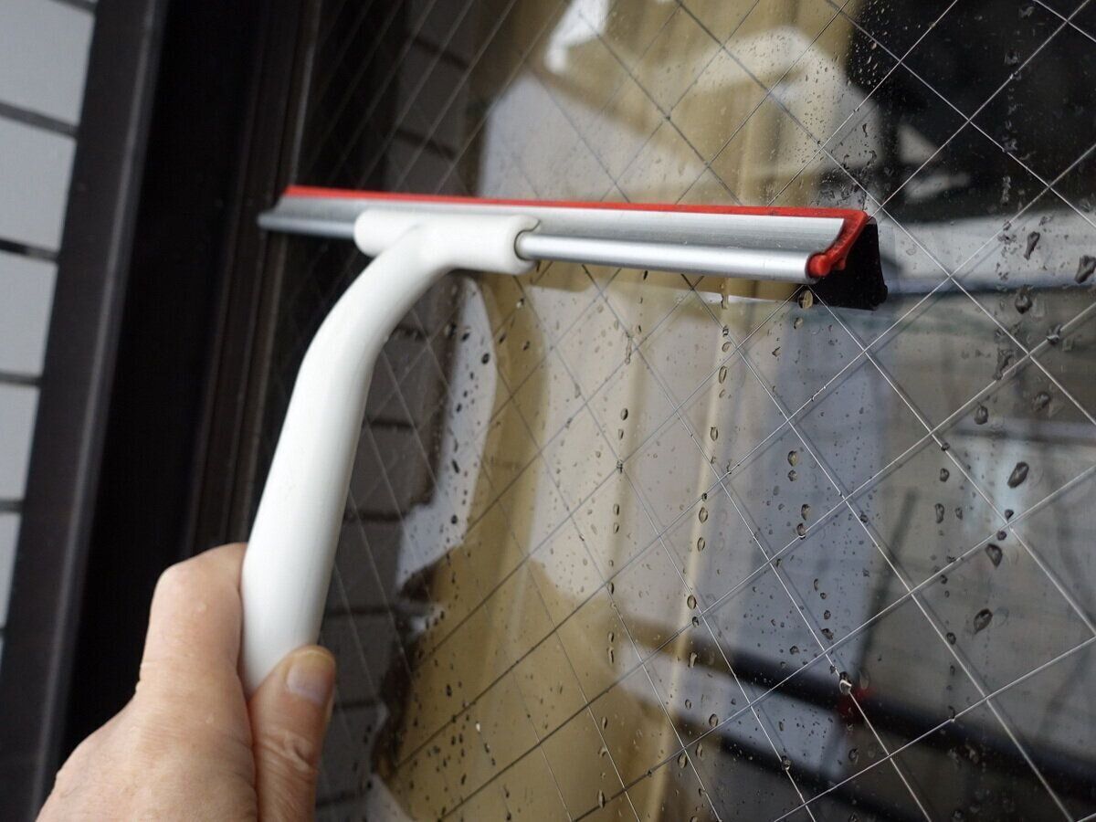 洗剤残り汚れの代表的なものが窓ガラス。窓ガラスはそんなに汚れていなければ、水をかけて拭き取るだけでいいそうです。水を拭き取る道具はスクイージーという道具を使います。今では100円ショップでも売っているので、探してみてください。水気を取ったら、最後は乾いた雑巾でよく拭きましょう。