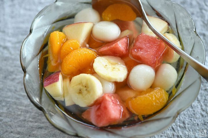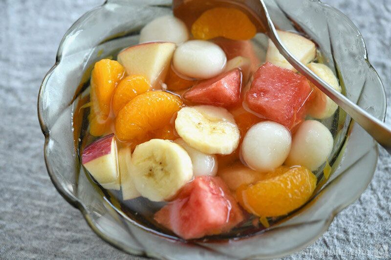 次のレシピは、夏にぴったりなフルーツポンチです。フルーツポンチは、シロップに数種類の果物を入れて冷やしたもので、カラフルな見た目からおもてなしやパーティーにもおすすめのデザートになっています。