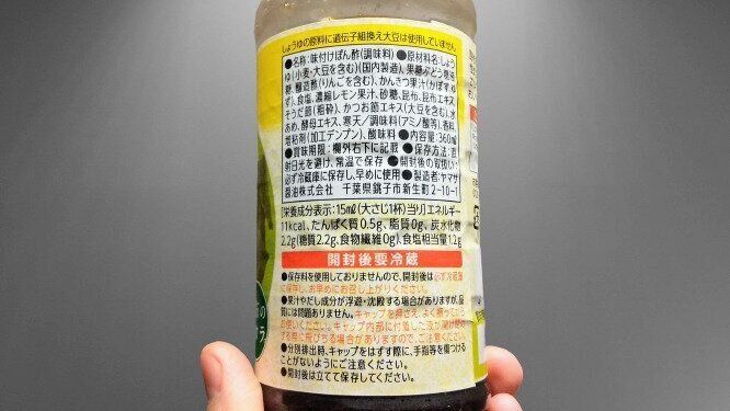 商品が手元にある人は、ぜひラベルの食品表示欄をチェックしてみてください。名称が「味付けポン酢」と表記されているはずです。
