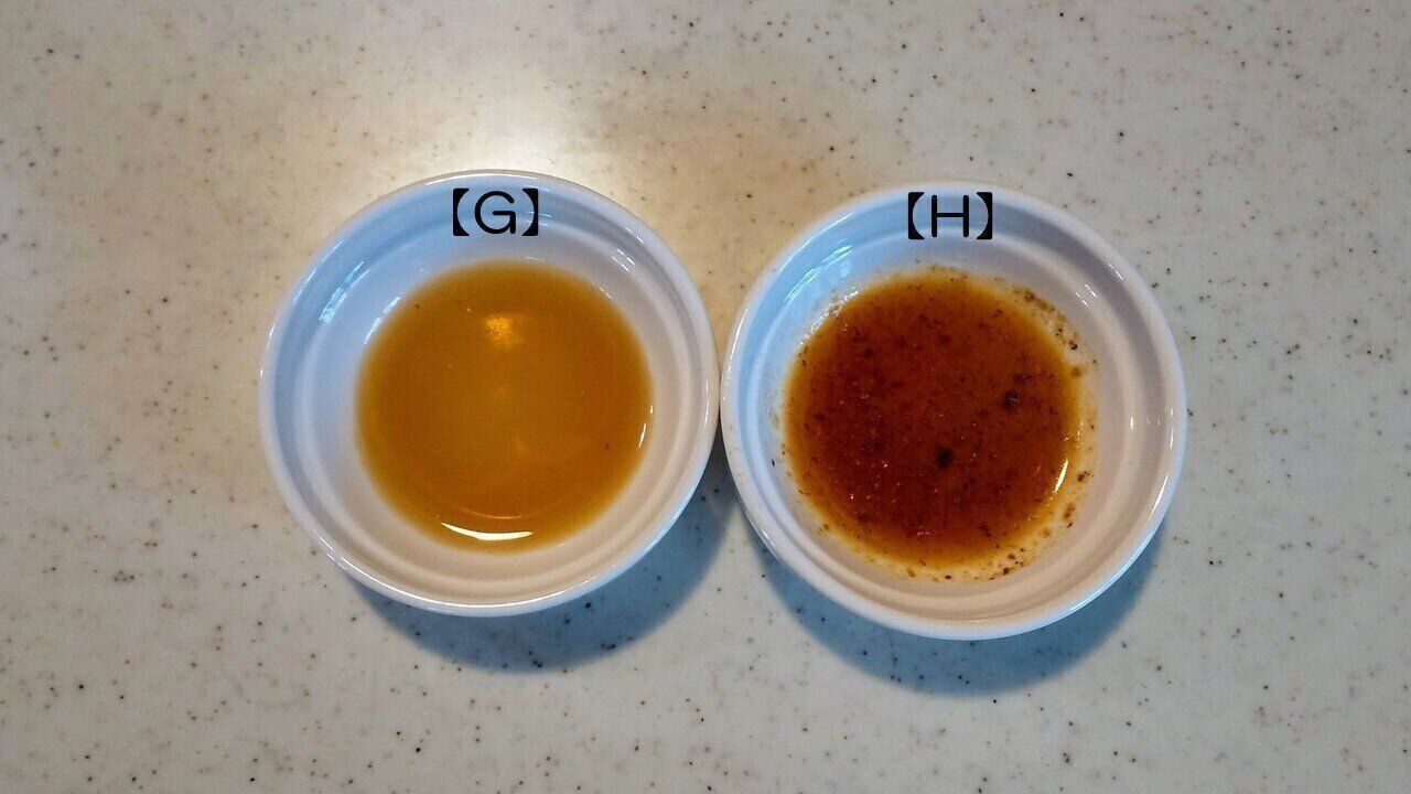 見た目は、固形の食材が含まれている【G】よりも【H】の方が一般的なポン酢に近くなりました。