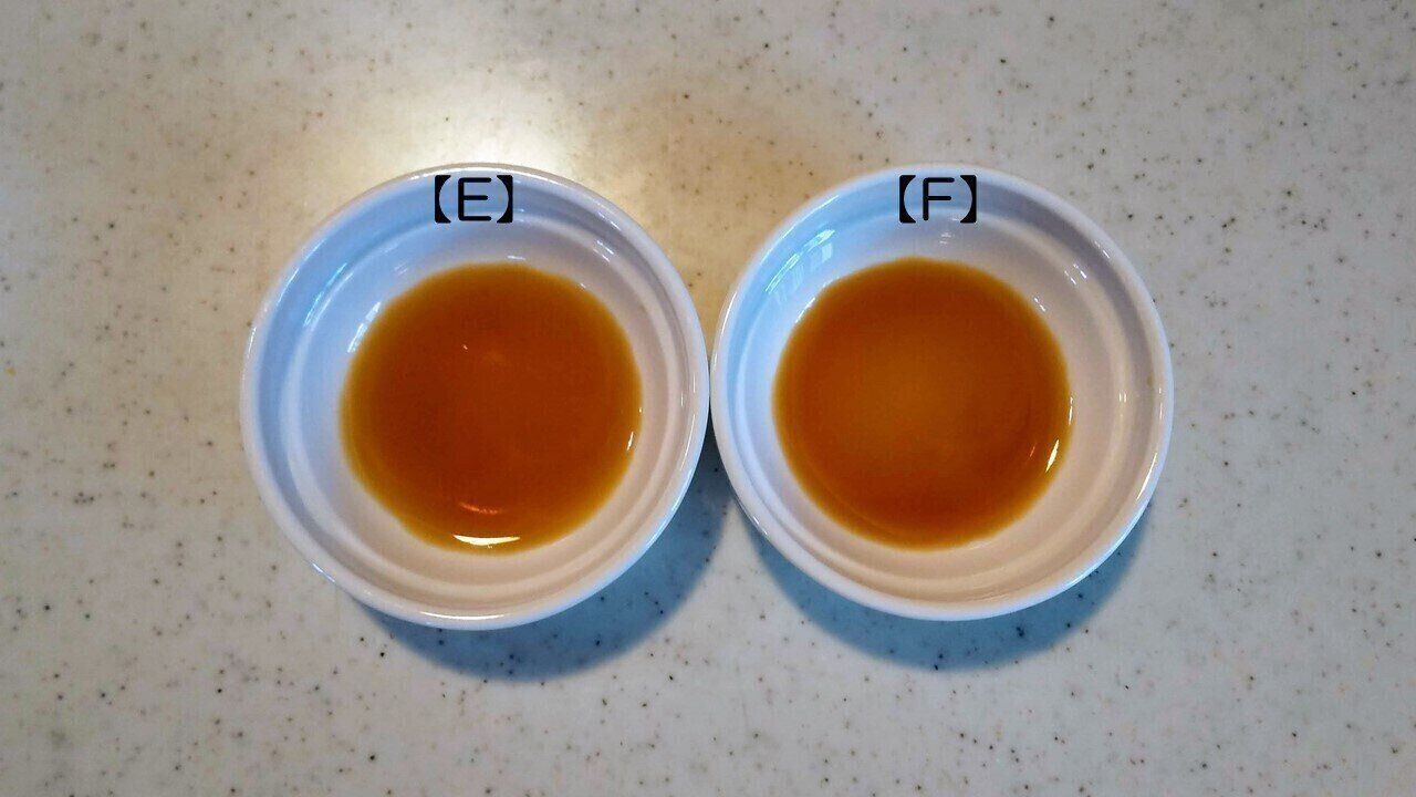 味については、どちらも最初の代用ポン酢よりも甘みが加わったことで、酸味がまろやかになりました。違いがあるとすれば、【E】は奥行きのある甘味、【F】はわかりやすい甘味を感じました。