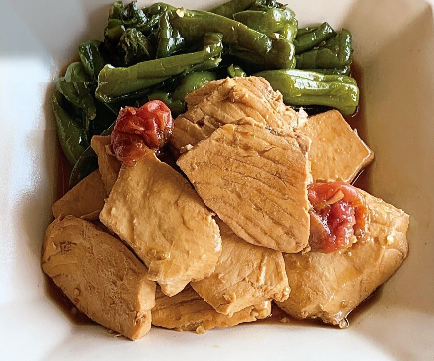 おすすめレシピ3:めかじきとピーマンの梅めんつゆ煮
