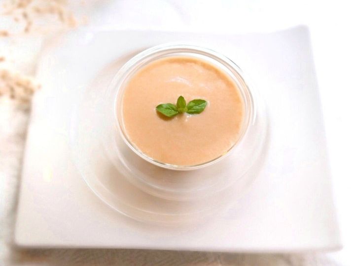 こちらは、生クリームを使用したクリーミーで甘酸っぱい桃のデザートスープです。