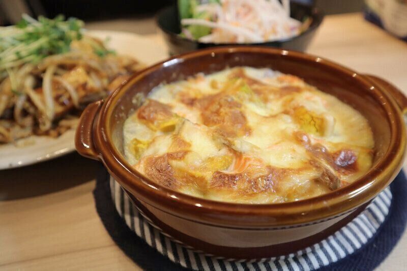 おすすめレシピ1:カボチャとサーモンのほくほくグラタン